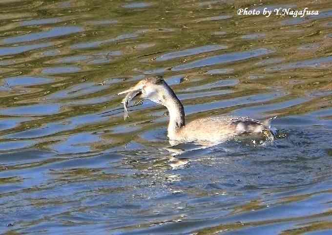 2019年12月24日 カンムロカイツブリ@ 採餌 本日は、用事で鳥撮りは休み。 12月20日撮影のカンムリカイツブリです。 この日、カンムリカイツブリは大きな魚を捕って食べるのに苦労していました。 カンムリカイツブリが大きな魚を捕りました。