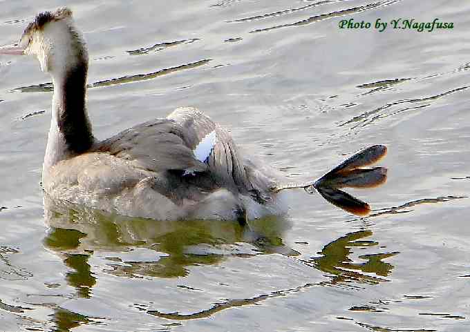 2019年12月29日 カンムリカイツブリ 弁足 本日は、ヨシガモがまだ居ることを確認しました。 12月24日撮影のカンムリカイツブリです。 この日、カイツブリの特徴である弁足を撮ることが出来ました。 カンムリカイツブリが休憩モードになりました。