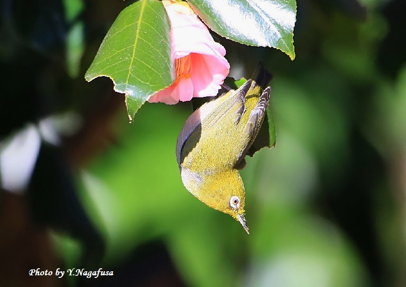 この日、ルリビタキ♂の待ち時間にメジロが近くに来てくれました。