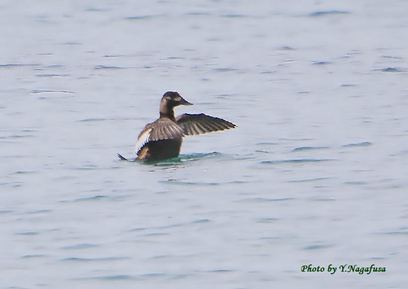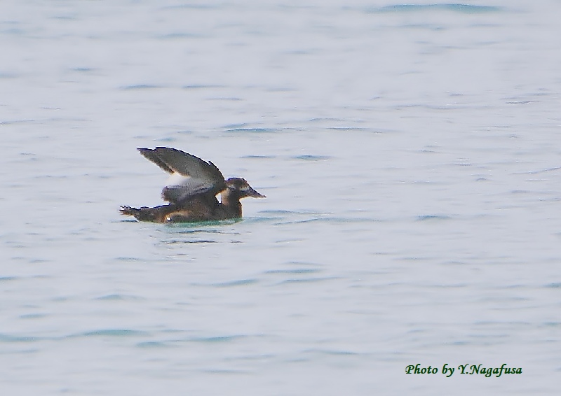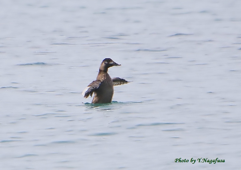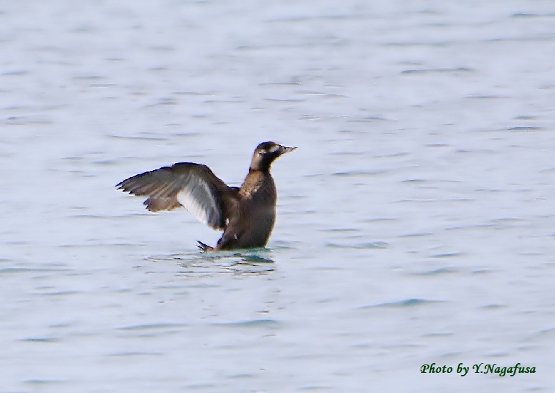 2020年3月8日 ビロードキンクロ♀U 羽ばたき 本日は、雨。 3月3日撮影のビロードキンクロ♀の続きです。 この日、ビロードキンクロの♀は採餌したり羽繕いしたりしてずっとこの場所に居てくれました。 ビロードキンクロ♀が羽ばたきしました。