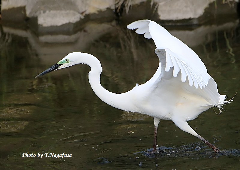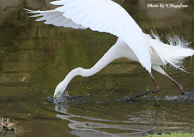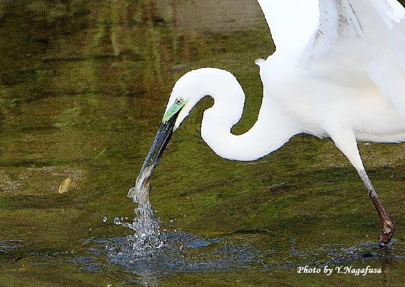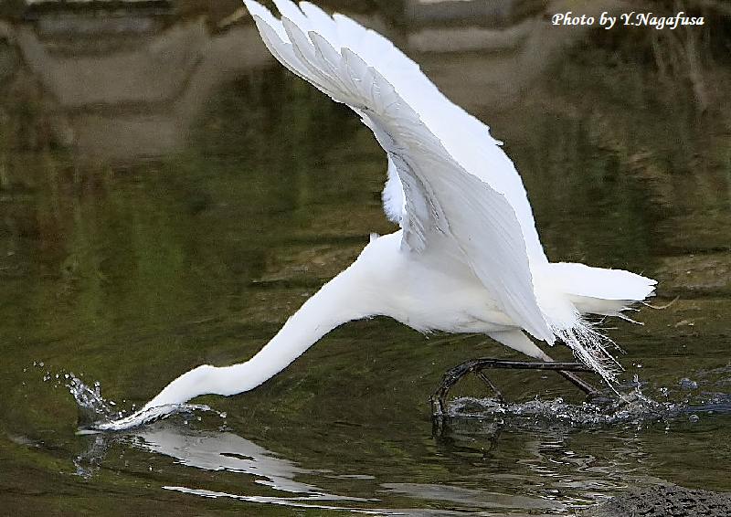 2020年6月2日 チュウサギT 採餌 本日は、ホオジロが一杯鳴いていました。 5月24日撮影のチュウサギです。 この日、チュウサギが獲物を狙っていたのでしばらく見ていたら魚を捕りました。 チュウサギが獲物を追いかけています。