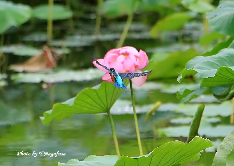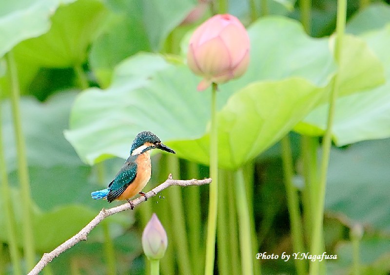 2020年7月21日 カワセミA 留まり物、飛び出し 本日は、曇り時々霧雨。 7月16日撮影のカワセミの続きです。 この日、止まり木に来てくれてその後蓮の花の前を通過しました。 カワセミが来ました。