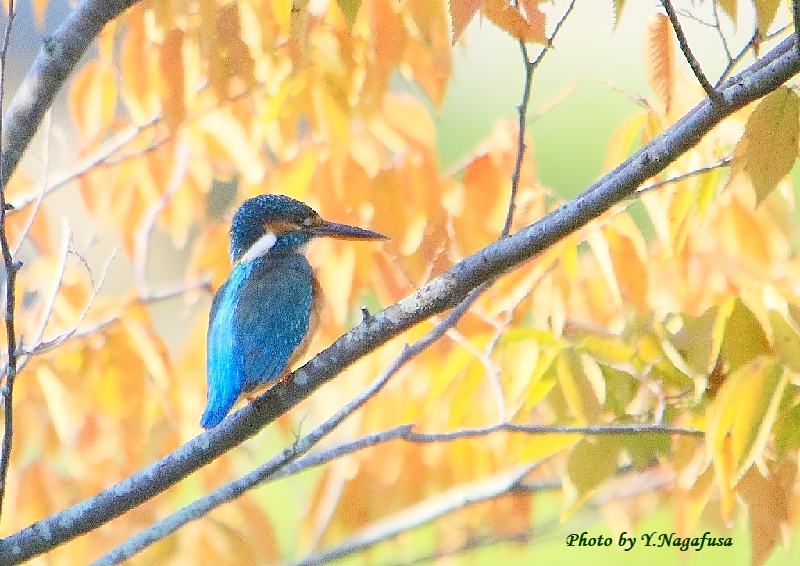 2020年11月13日 カワセミ 枝留まり、飛翔 本日は、サポカー ナビの設定に時間が掛りました。 11月5日撮影のカワセミです。 この日、紅葉絡みのカワセミを撮りたかったが無理でした。 紅葉近くにカワセミが来ました。 ピンボケですが掲載します。魚を咥えています。