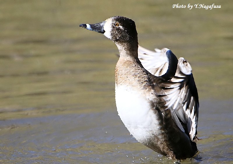 2021年3月2日 クビワキンクロ♀T 羽ばたき 本日は、雨時々曇り。 2月18日撮影のクビワキンクロ♀です。 この日、まだ滞在しているクビワキンクロ♀を見てきました。 近くで羽ばたきを何回もしていました。 クビワキンクロ♀が羽ばたきをしました。