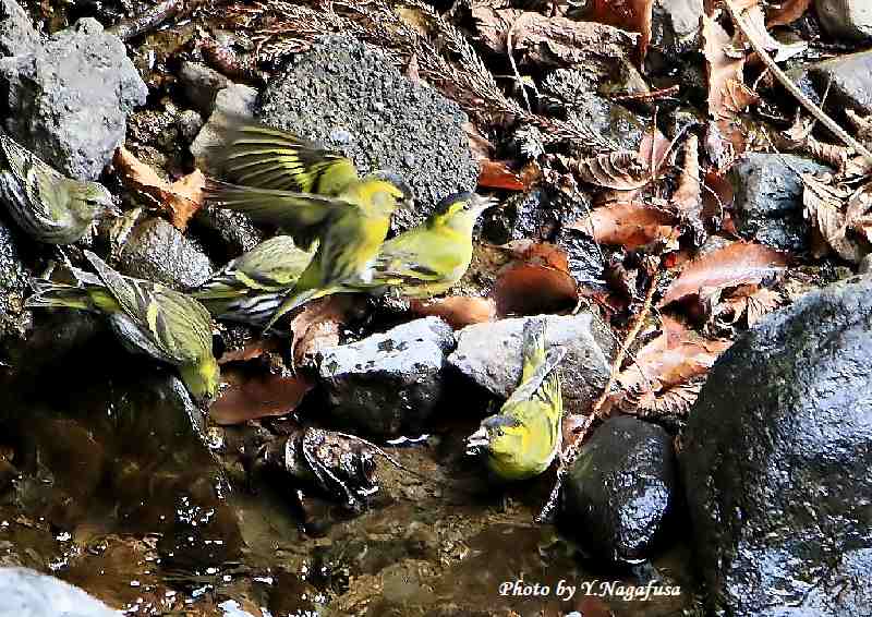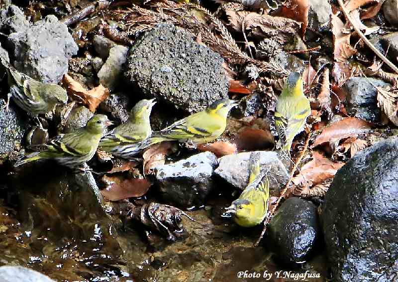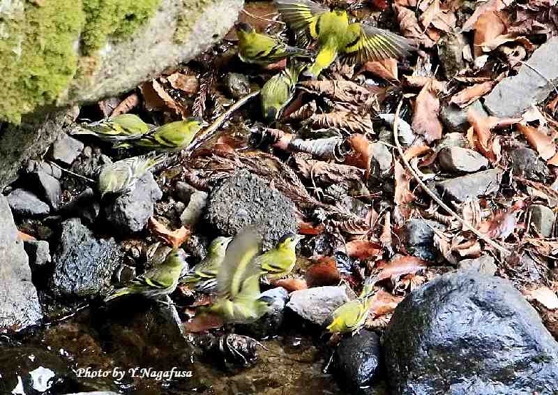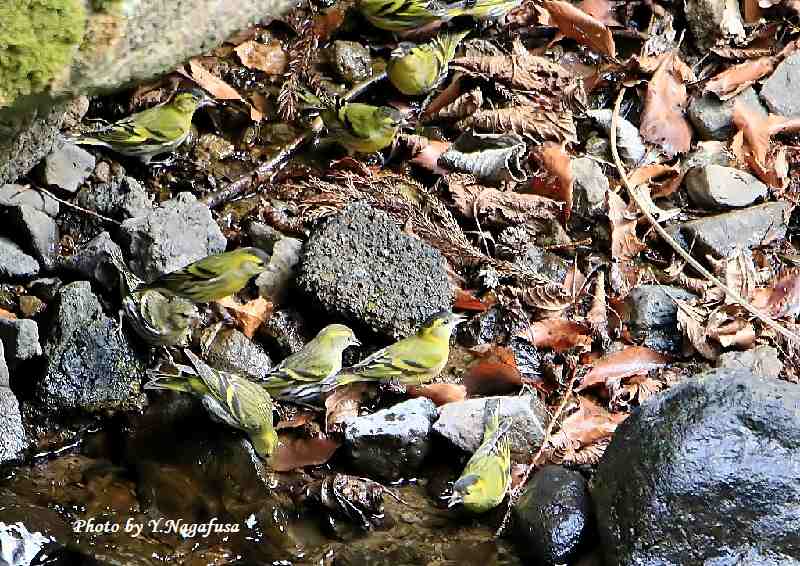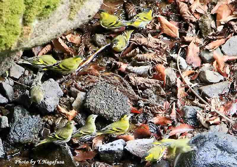 2021年3月26日 マヒワA 群れ、水飲み 本日は、カワセミだけでした。 3月16日撮影のマヒワの続きです。 この日、マヒワは近くの木から水辺に降りて水飲みして行きました。 マヒワの群れが来ました。