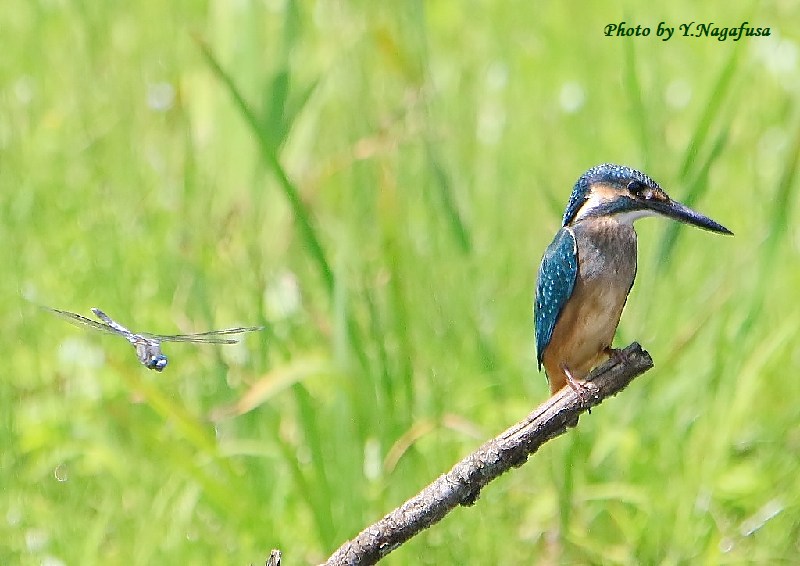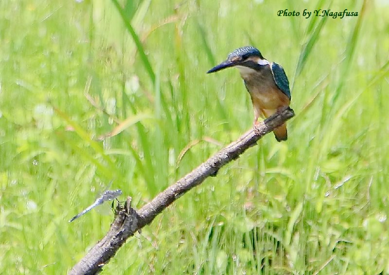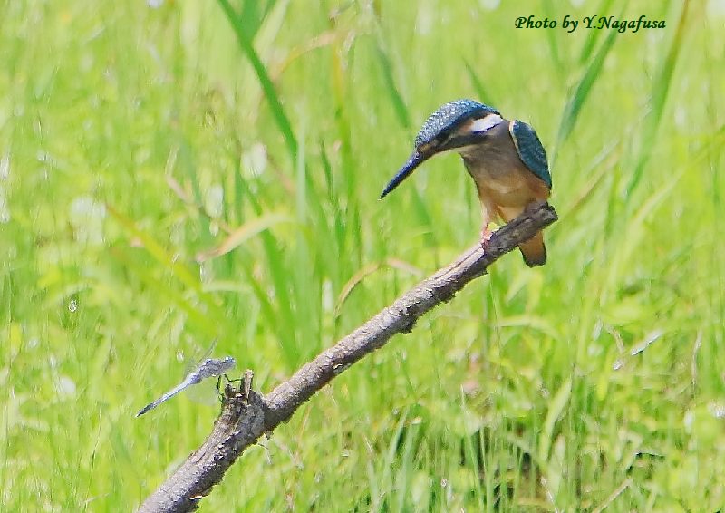 2021年7月17日 カワセミ@ 幼鳥、トンボ 留まり物 本日は、晴れで暑い。 7月10日撮影のカワセミ幼鳥です。 この日、カワセミ幼鳥にシオカラトンボが近づきました。何も起きませんでした。 カワセミ幼鳥近くにシオカラトンボが来ました。