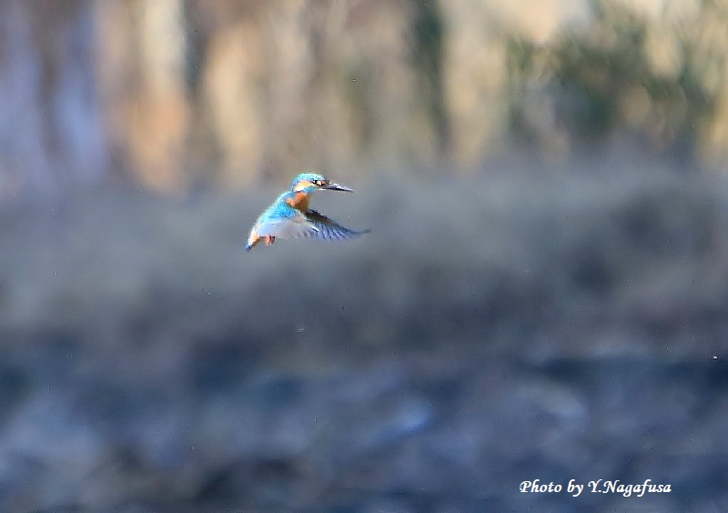 2021年12月14日 カワセミ ホバリング 本日は、雨のち午後晴れ。 11月30日撮影のカワセミです。 この日、大川の対岸近くでカワセミのホバリングが有りました。 遠いけど撮ってみました。 カワセミのホバリング。