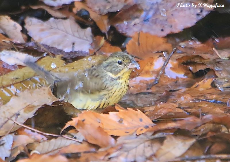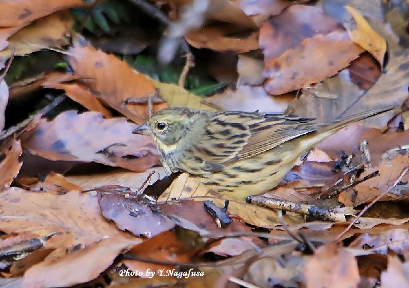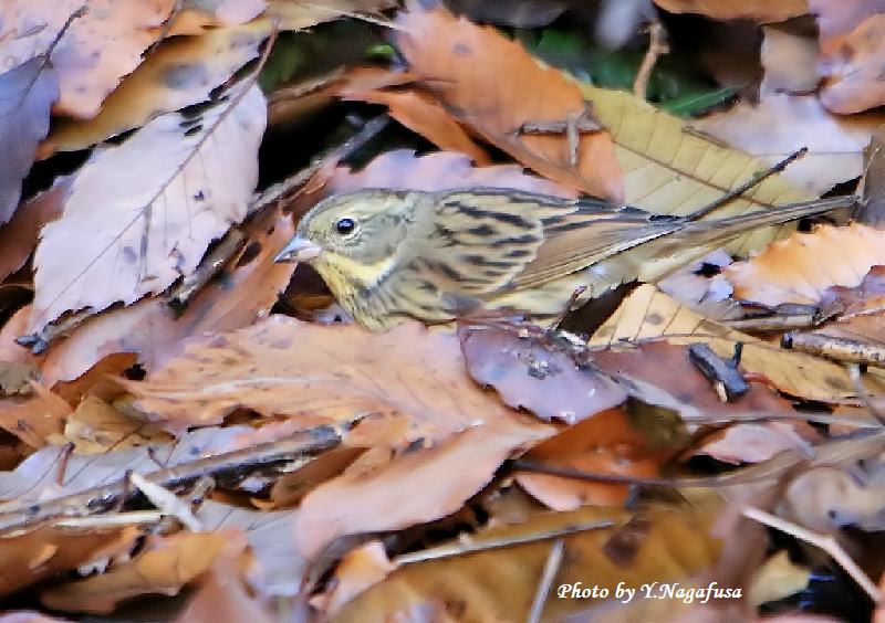 この日、公園内を歩いていると落ち葉の中にアオジが居ました。