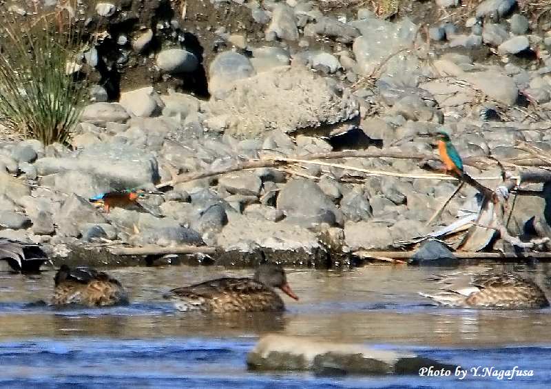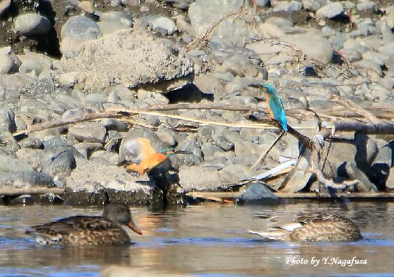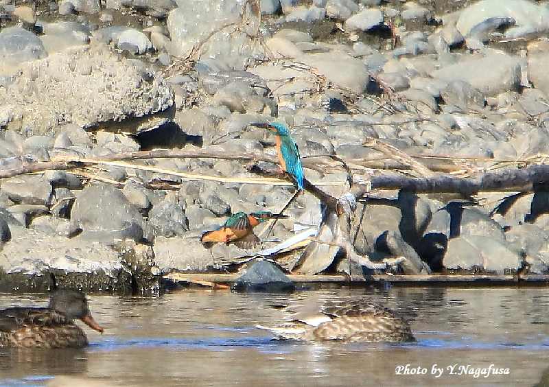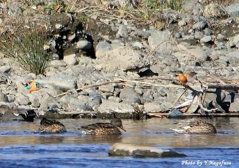 2021年12月24日 カワセミ バトル? 本日は、ニシオジロビタキに会えました。 12月12日撮影のカワセミです。 この日、対岸で2羽のカワセミが長い間にらみ合いをしてました。 カワセミがいました。