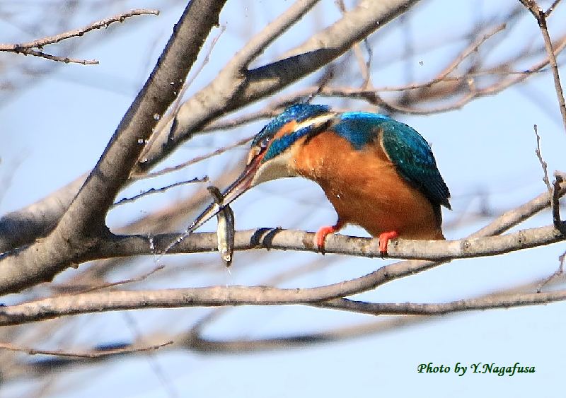 カワセミが獲物を捕りました。