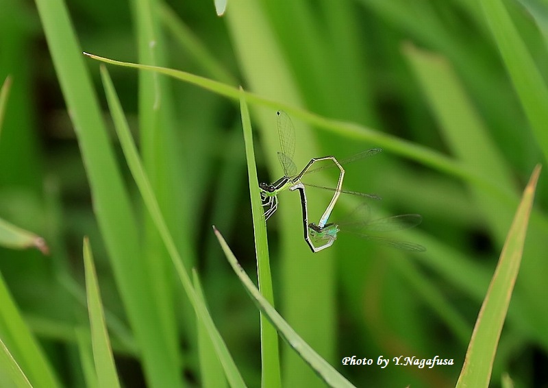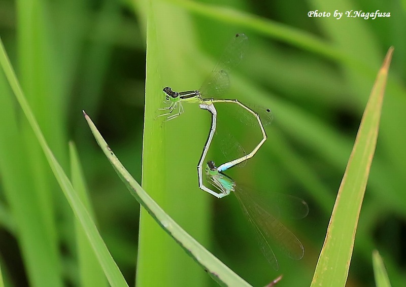 2022年9月1日 アジアイトトンボ 交尾 本日は、雨のち」晴れ。 8月29日撮影のアジアイトトンボです。 この日は、アオモンイトトンボを撮りに行ったら近くに一回り小さいアジアイトトンボがいました。 こんなに小さいトンボは初めて見ました。 左下アジアイトトンボ、 右上アオモンイトトンボ。