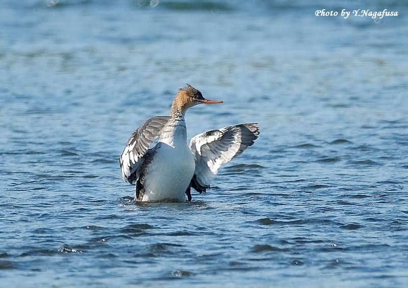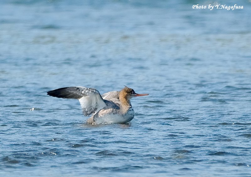 2022年11月16日 カワアイサ♀4 羽ばたき 本日は、カンムリカイツブリに会えました。 11月8日撮影のカワアイサ♀の続きです。 この日、カワアイサ♀が羽ばたきを数回していました。 カワアイサ♀の羽ばたきです。