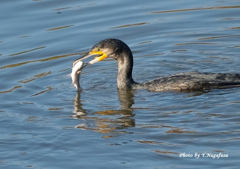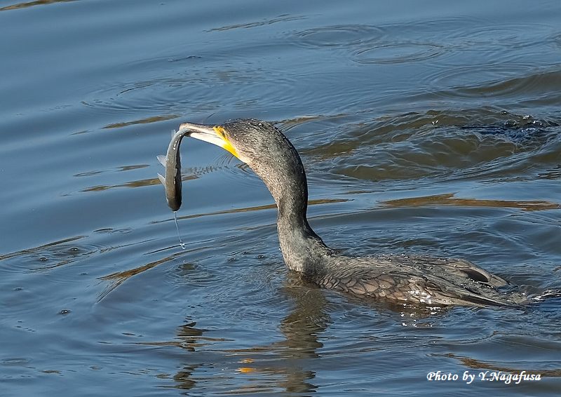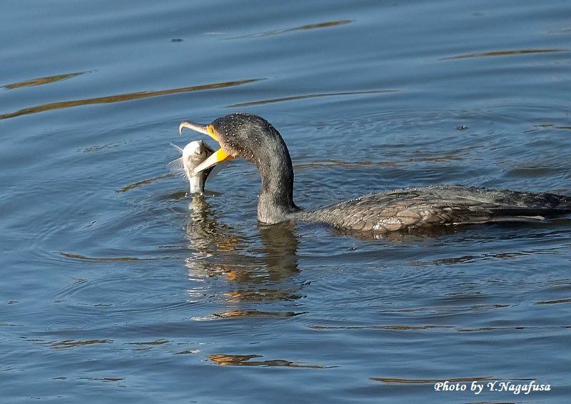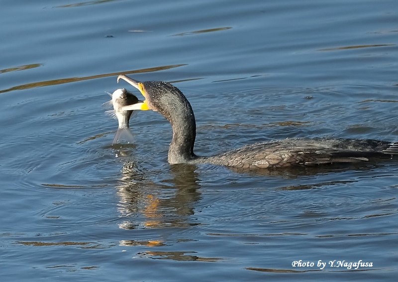 この日、カワウの採餌場面が撮れました。