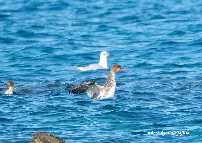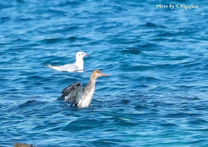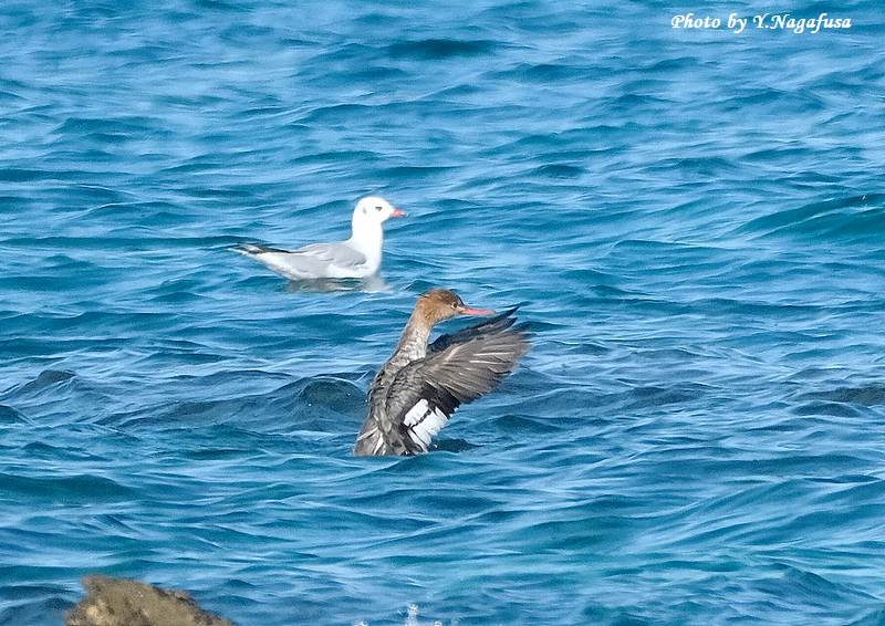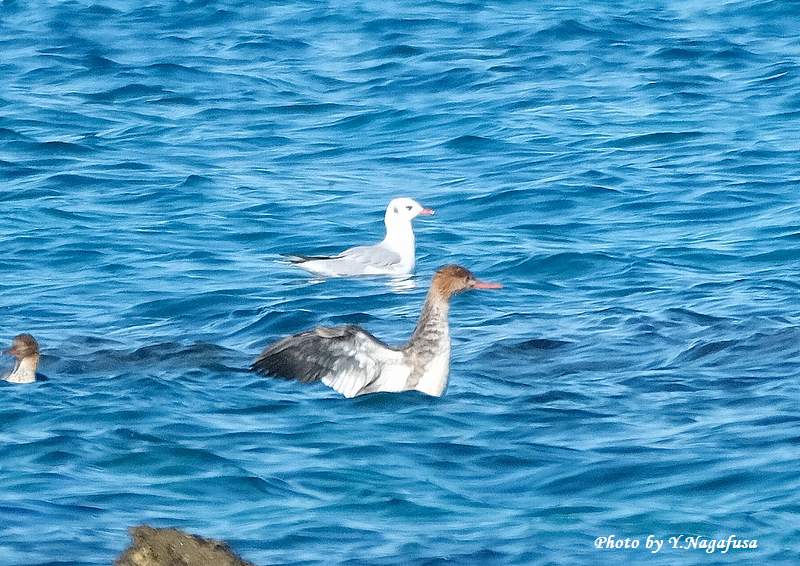 2023年1月6日 ウミアイサ♀B 羽ばたき 本日は、自宅近くの川にジョウビタキ♀がいました。 12月20日撮影のウミアイサ♀の続きです。 この日、群れは少し遠かったがいっぱい撮ってしまいました。 ウミアイサ♀が羽ばたきしました。後ろはユリカモメ。