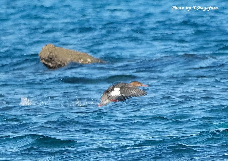 2023年1月8日 ウミアイサ♀C 飛び出し、飛翔 本日は、ウグイスが撮れました。 12月20日撮影のウミアイサ♀の続きです。 この日、飛び出しの場面もありました。 ウミアイサ♀の飛び出し。