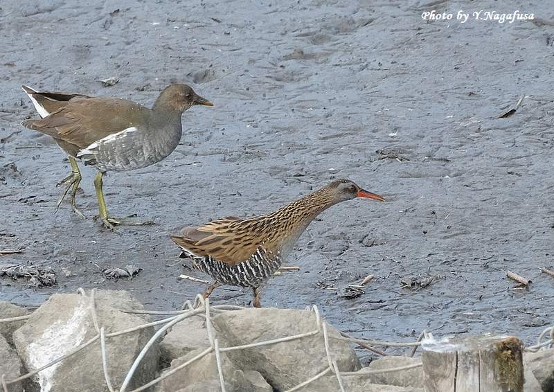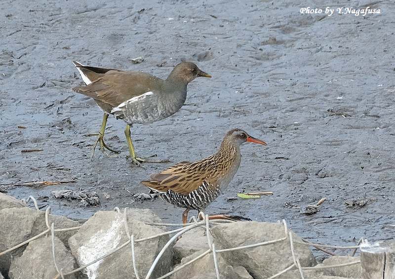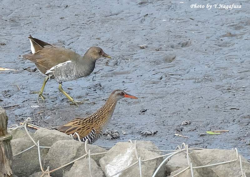 この日、オオバンの若鳥と一緒にクイナが出てきました。