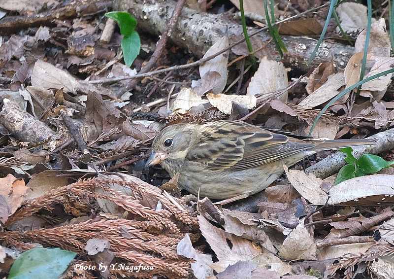 2023年3月5日 クロジ♀ 採餌、留まり物 本日は、曇りで暗い。 2月18日撮影のクロジ♀です。 この日、帰りがけクロジ♀に会えました。 最初アオジかと思ったがよく見るとクロジでした。 クロジ♀が居ました。