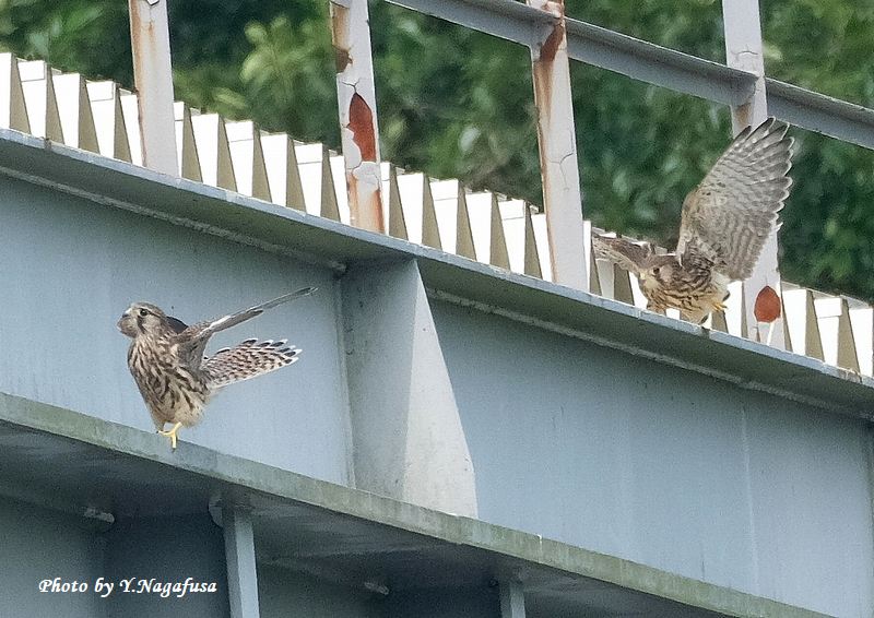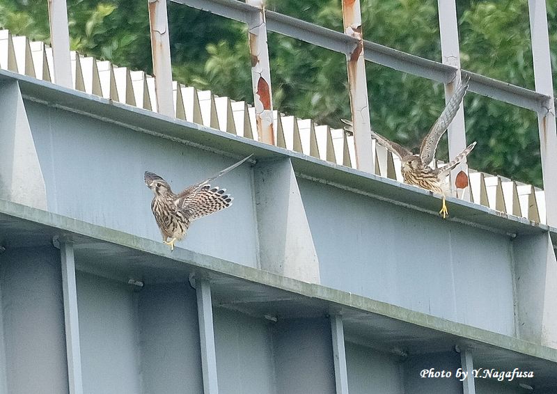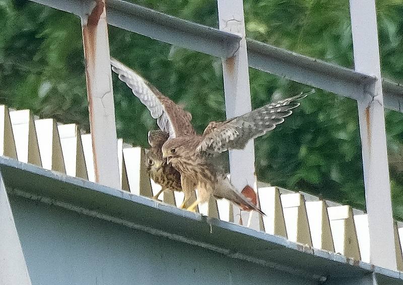 2023年7月2日 チョウゲンボウ② 巣立ち雛、飛翔 本日は、コジュケイ親子に会えました。今季2番子のようです。 6月25日撮影のチョウゲンボウ巣立ち雛の続きです。 この日、3羽の巣立ち雛がじゃれあっていました。 チョウゲンボウの巣立ち雛です。