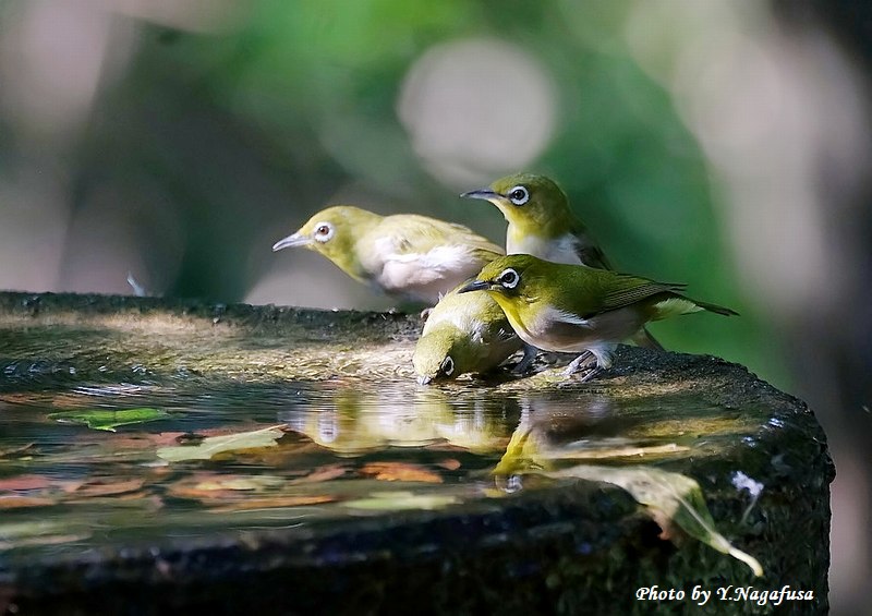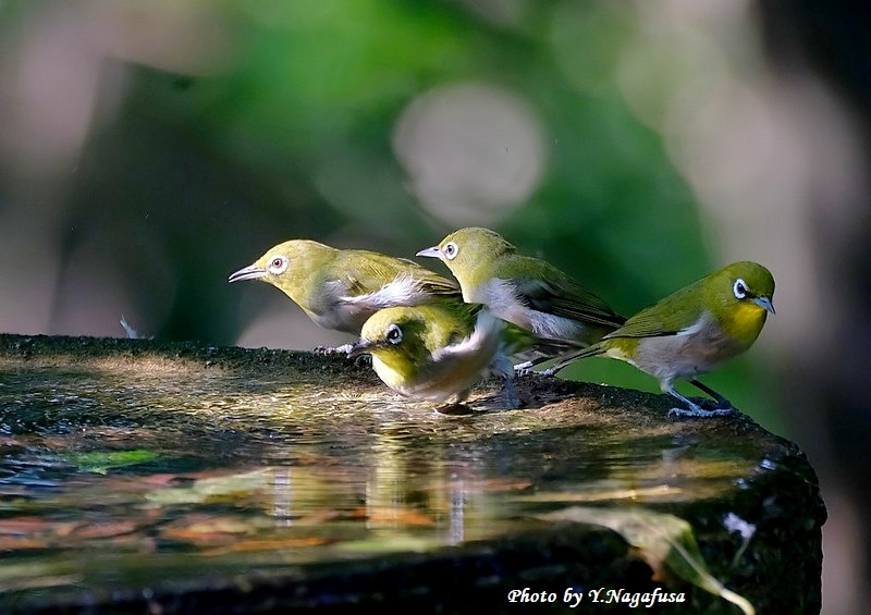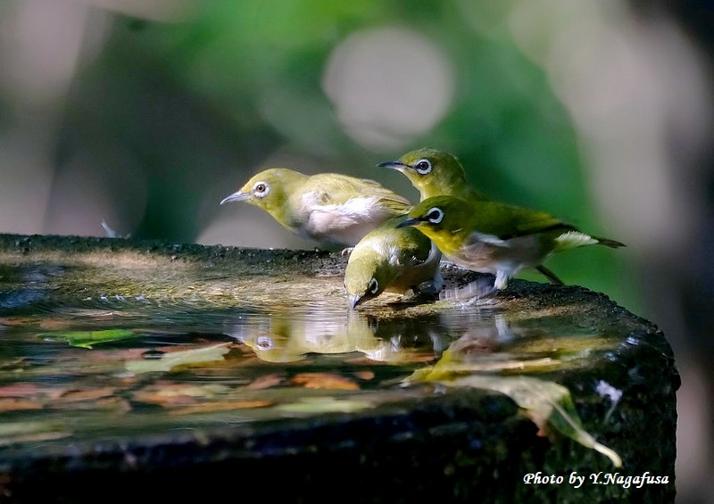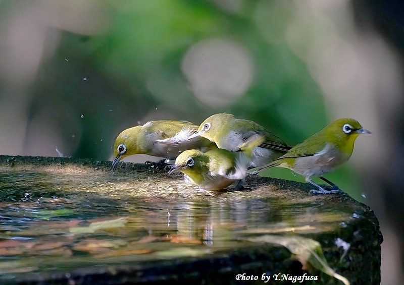 この日、メジロは数羽で水場を占領していました。