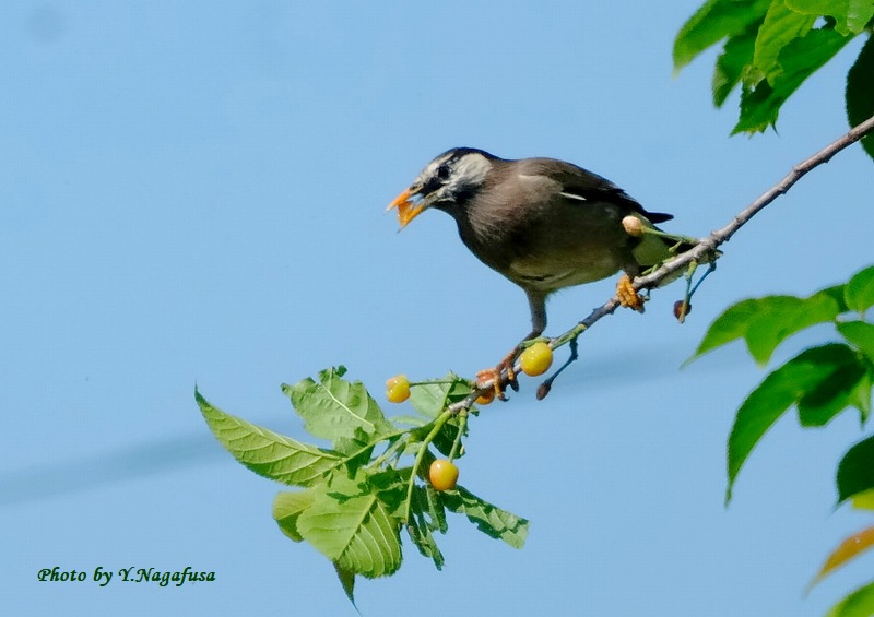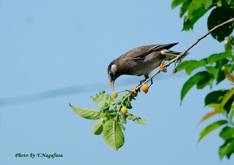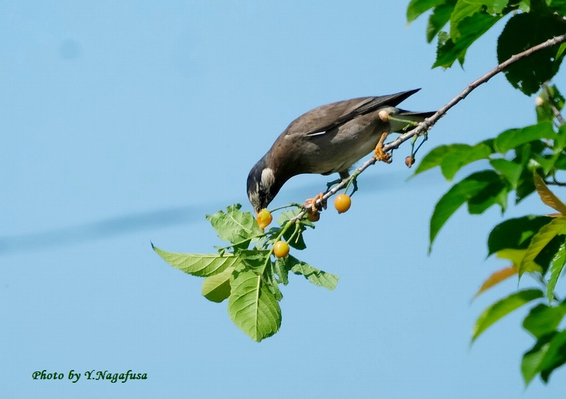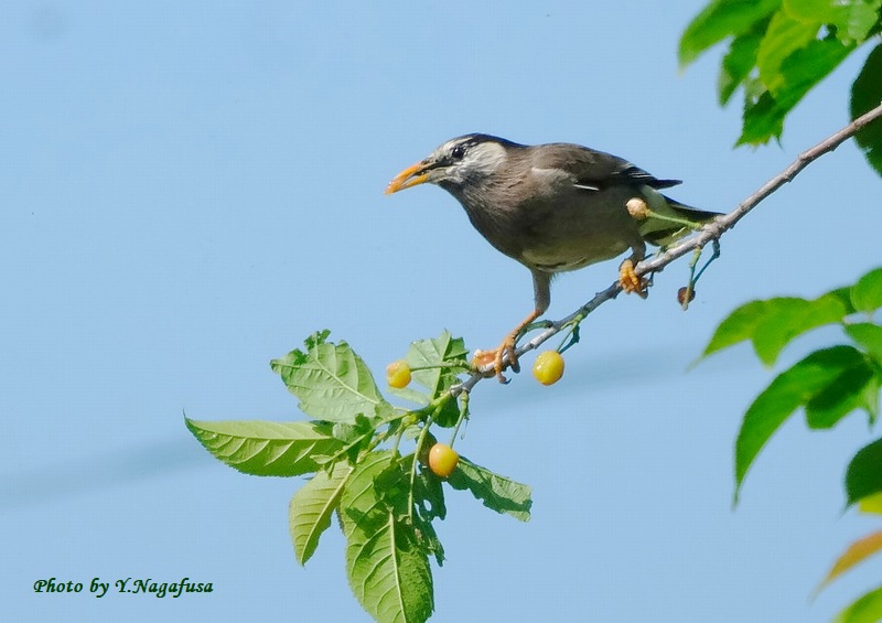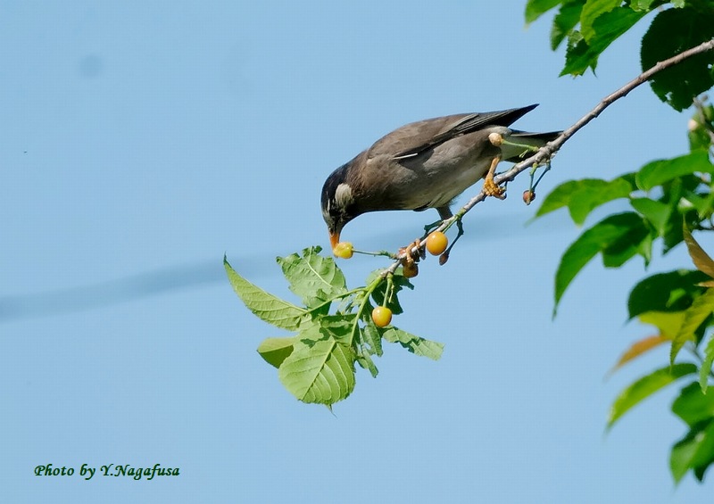 この日、コムクドリの採餌の場所にムクドリが来ました。