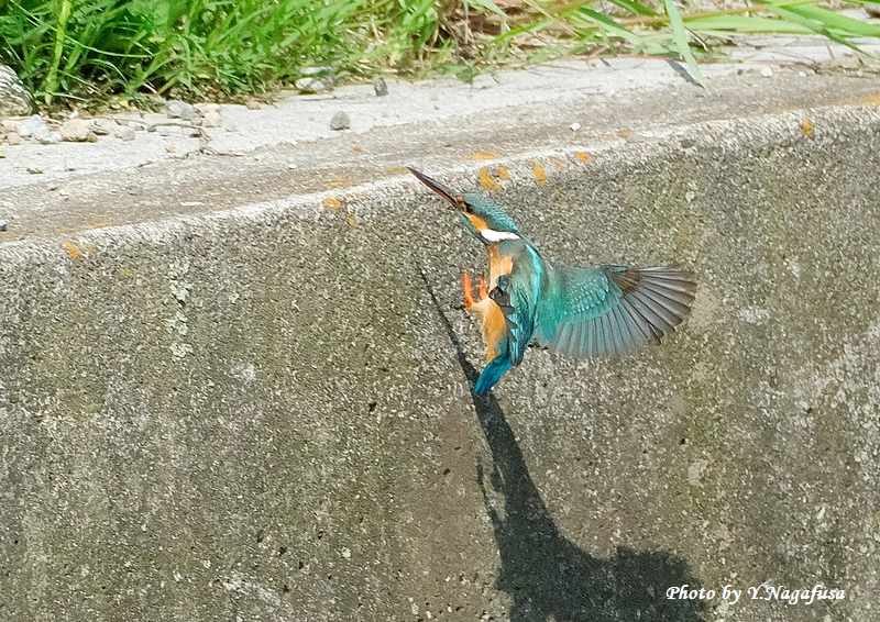 この日、カワセミが数回飛び込んでくれました。