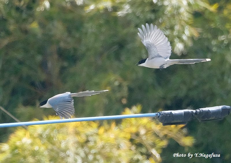 この日、遠くにオナガの群れが居ました。