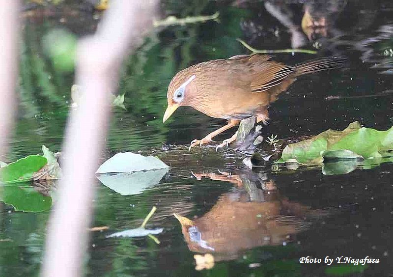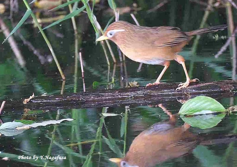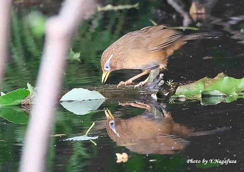 この日、カワセミ雛の場所にガビチョウがきました。