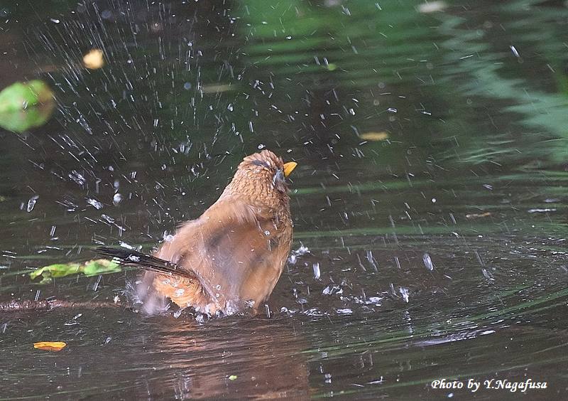 2024年6月11日 ガビチョウ2 水浴び 本日は、チョウゲンボウの巣立ち雛を見てきました。 5月24日撮影のガビチョウの続きです。 この日、ガビチョウは水浴びして行きました。 ガビチョウです。
