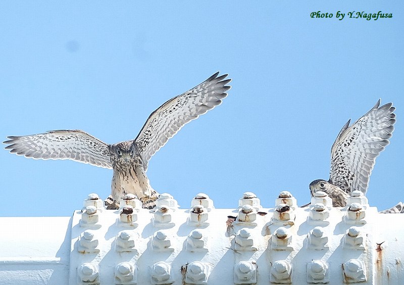 2024年6月19日 チョウゲンボウ3 雛羽ばたき 本日は、布団を干したり梅雨前準備。 6月11日撮影のチョウゲンボウの続きです。 この日、チョウゲンボウの巣立ち雛が羽ばたき練習していました。 チョウゲンボウ雛です。