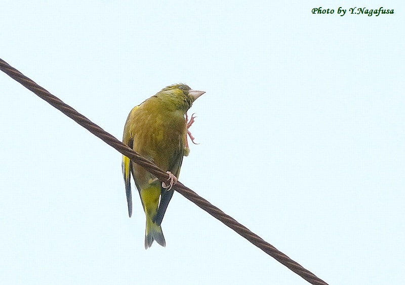2024年7月8日 カワラヒワ 電線留まり