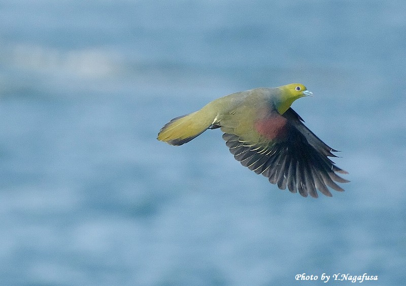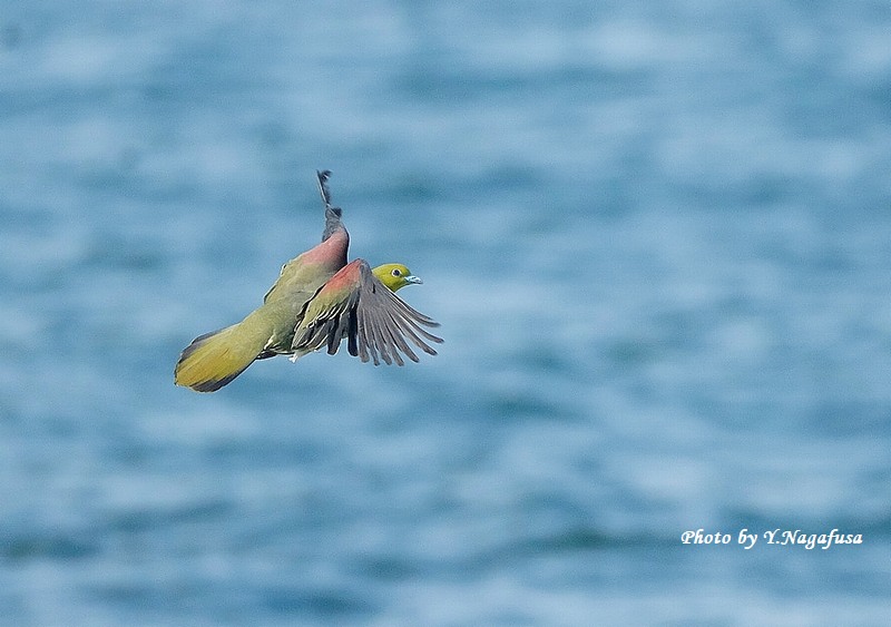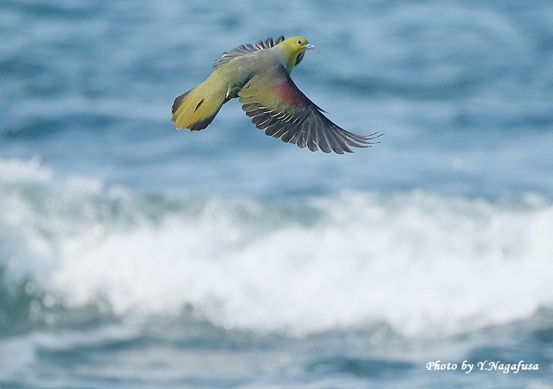 この日、アオバト♂の飛翔が撮れました。
