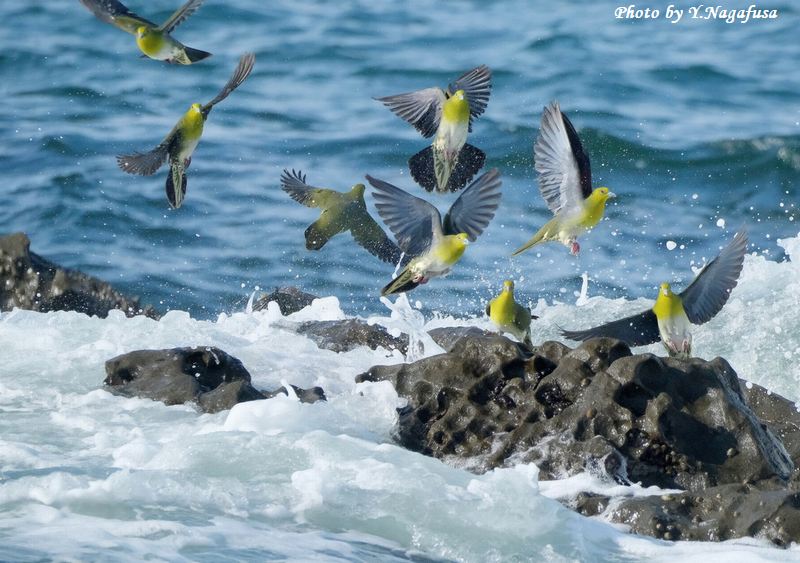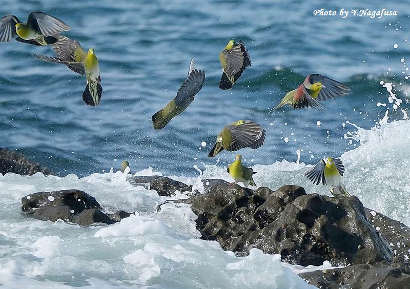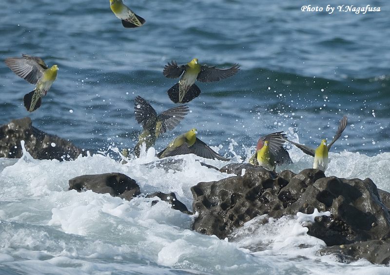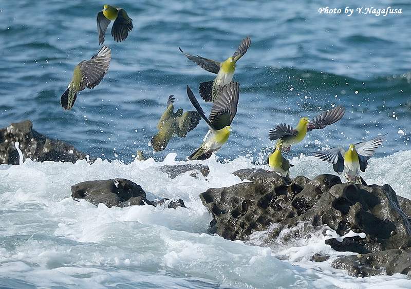 この日、アオバトは何回も波を被り海水を飲んでいました。