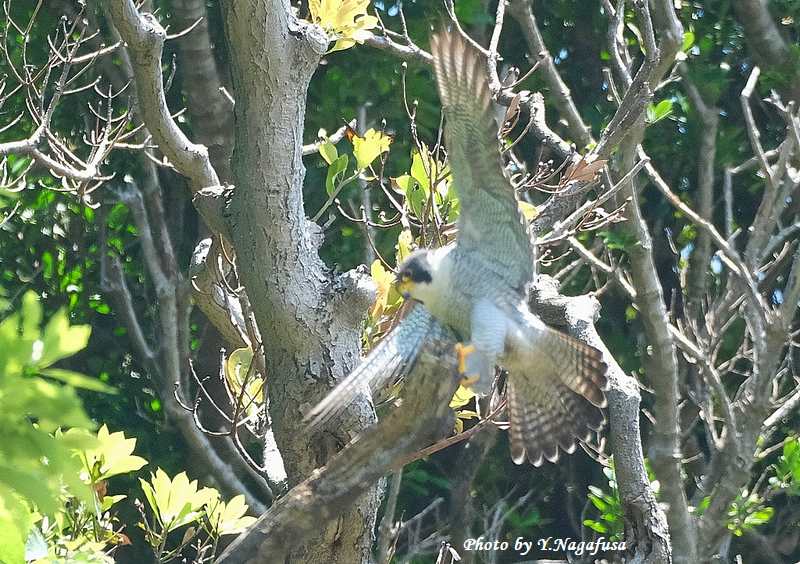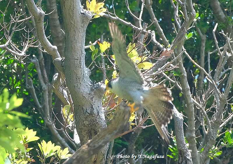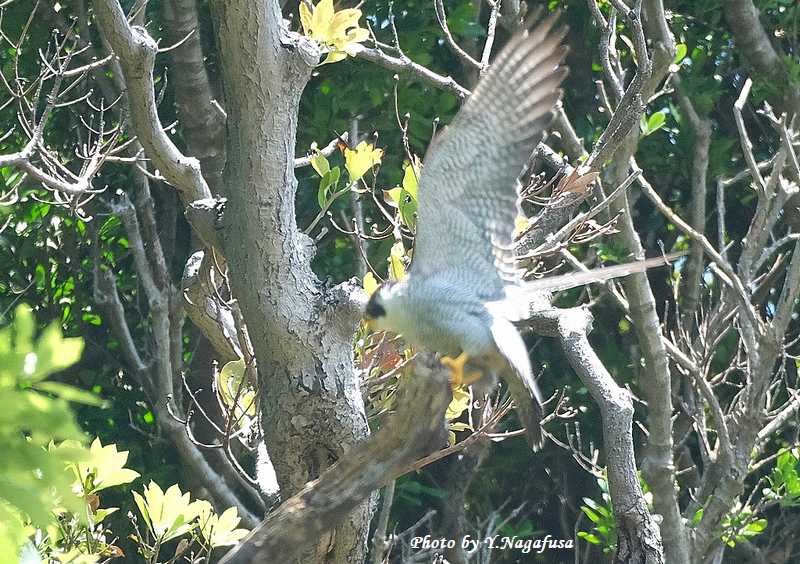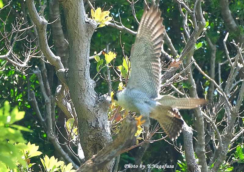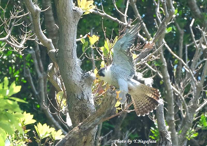 この日、ハヤブサが近くの木に飛び移りました。