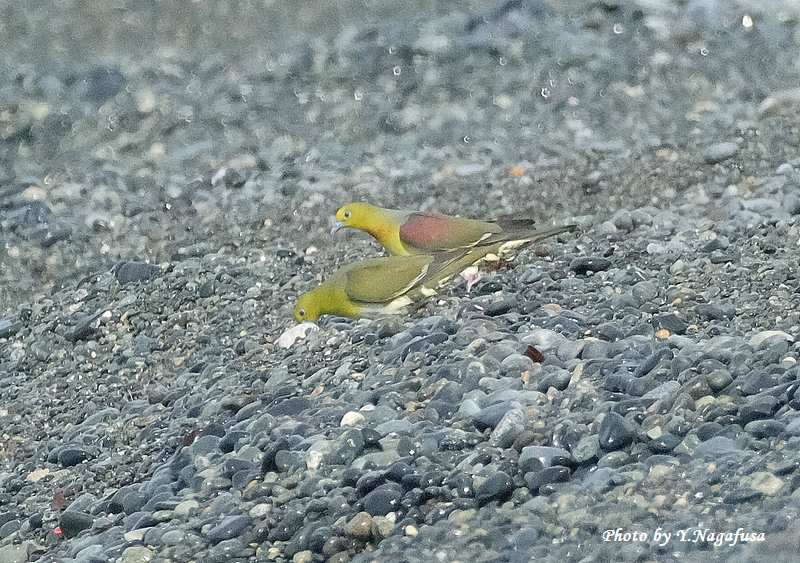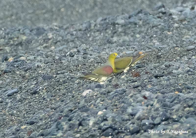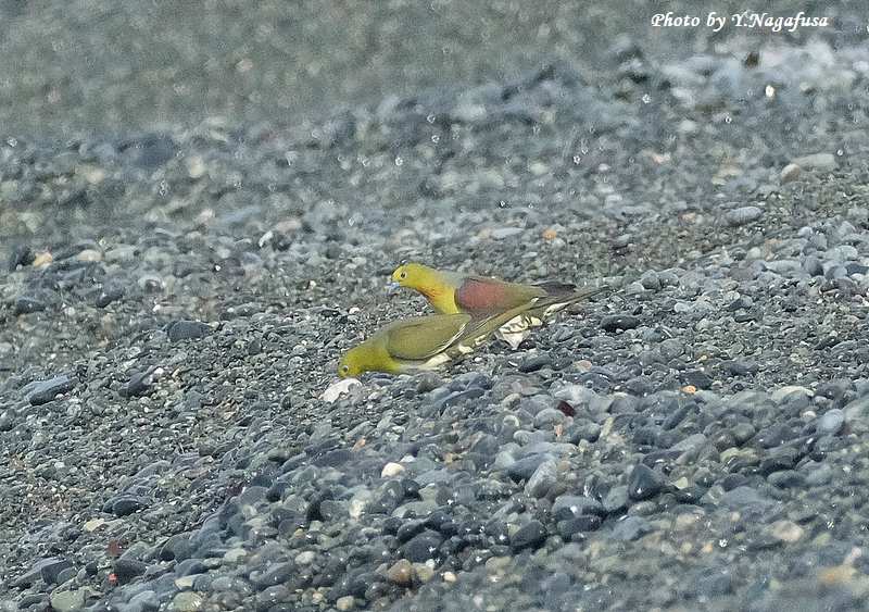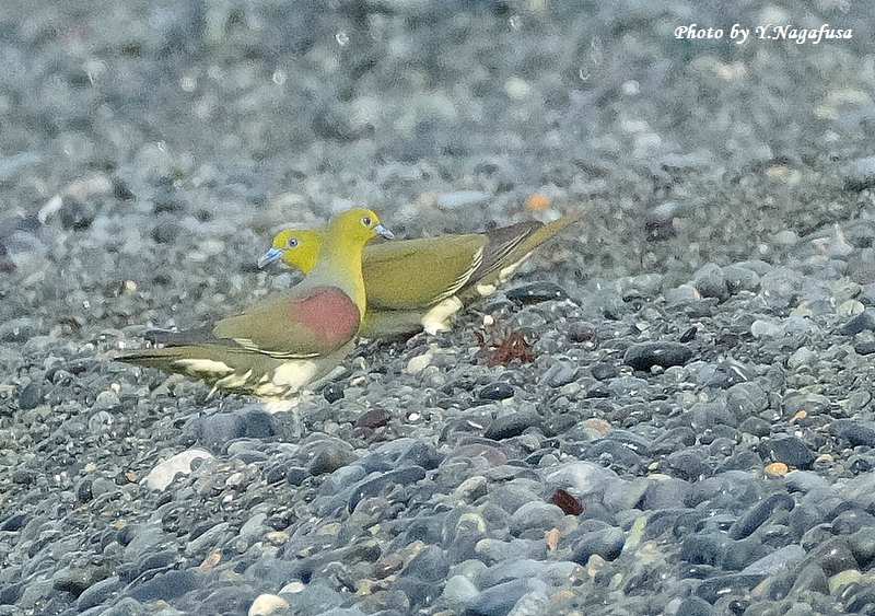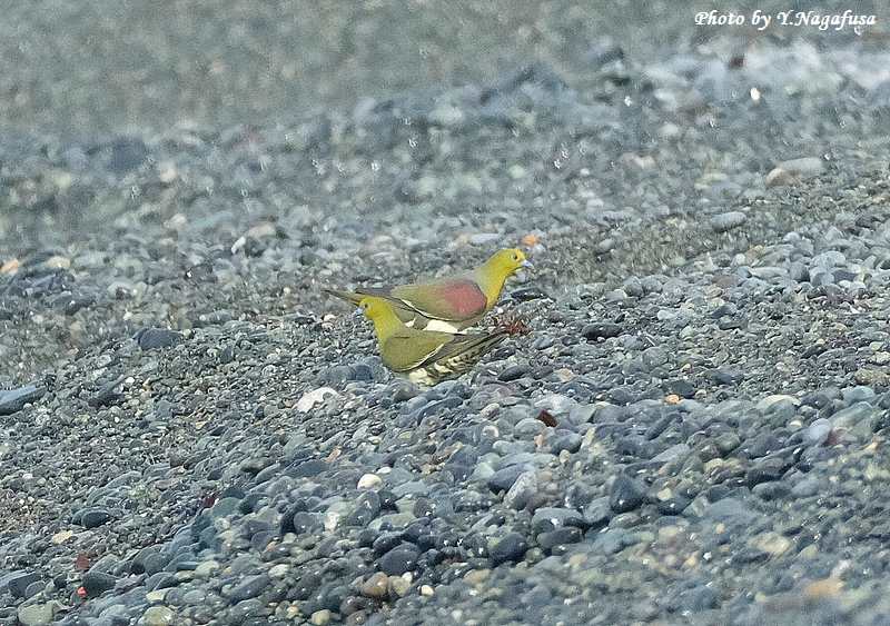 この日、アオバトが波しぶきが掛かる砂浜に来ました。