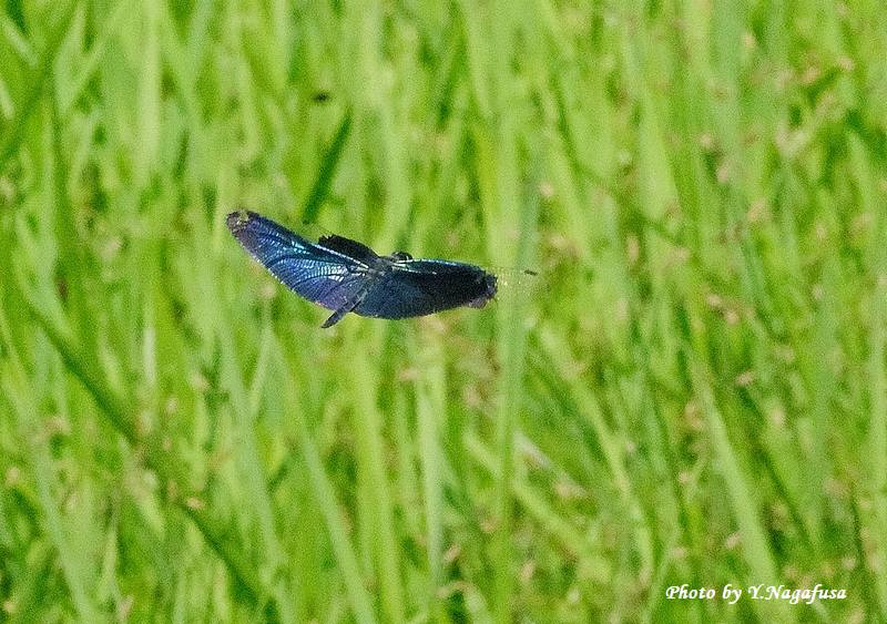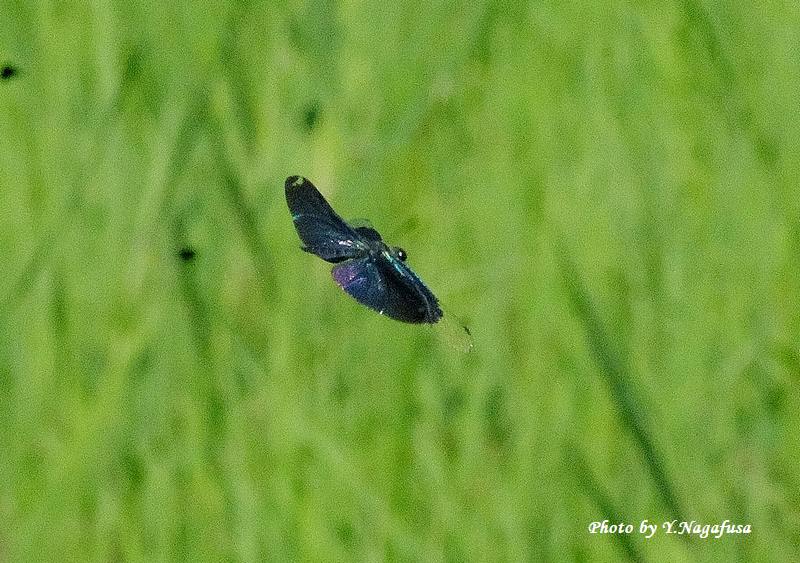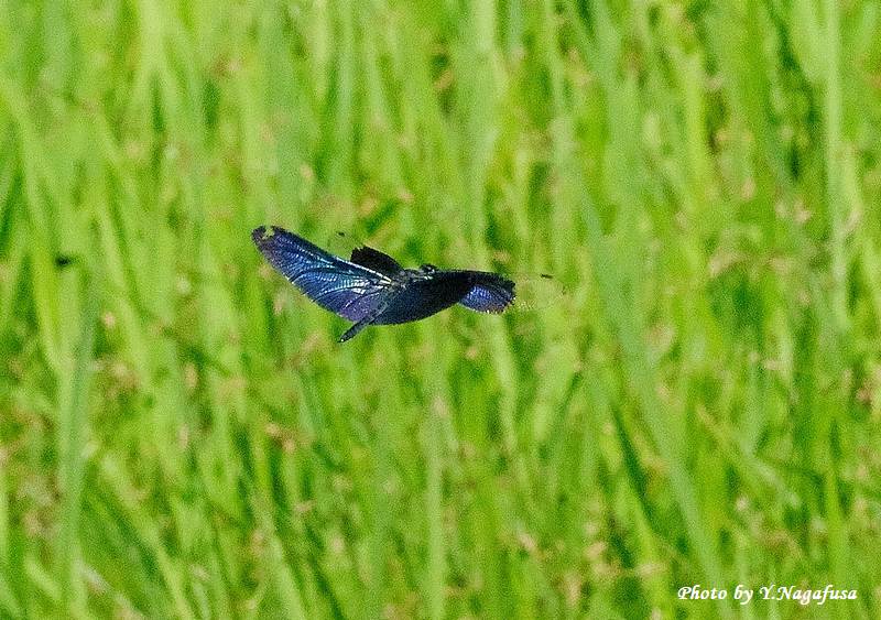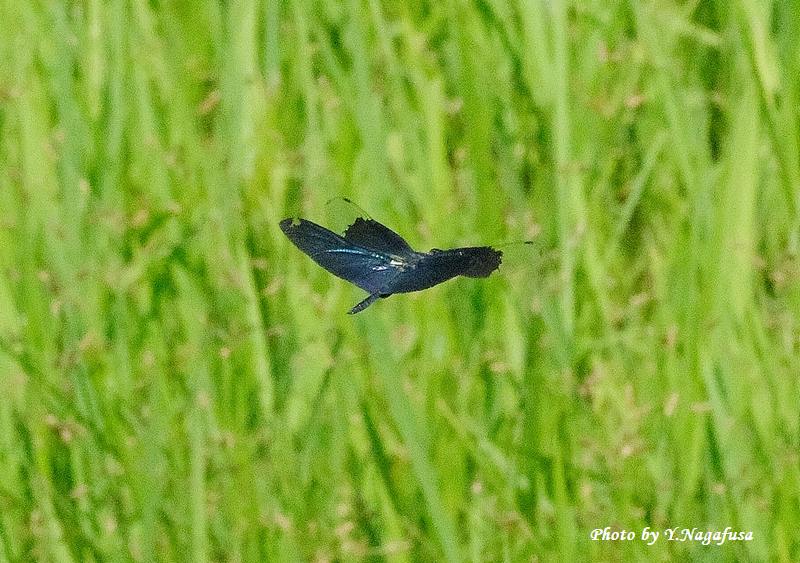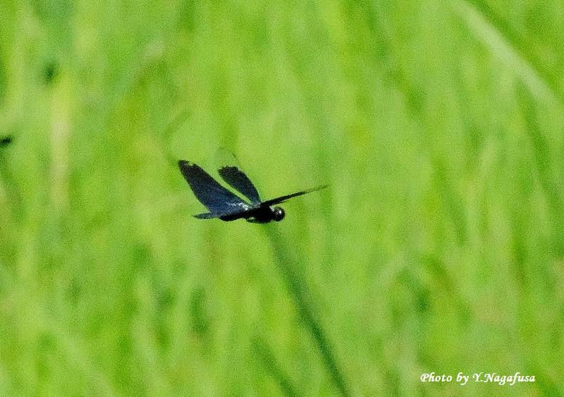 この日は、チョウトンボは留まらないので飛翔を狙ってみました。