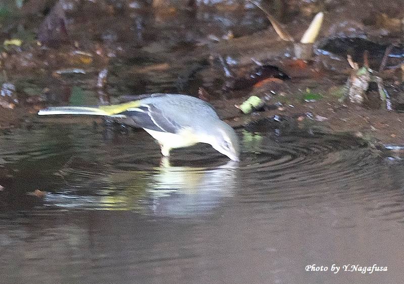 この日は、キセキレイが水飲みに来ました。