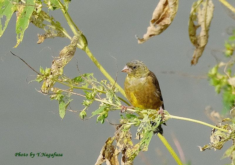 この日は、カワラヒワの群れはしばらく採餌していました。