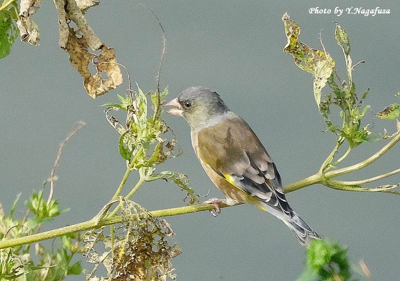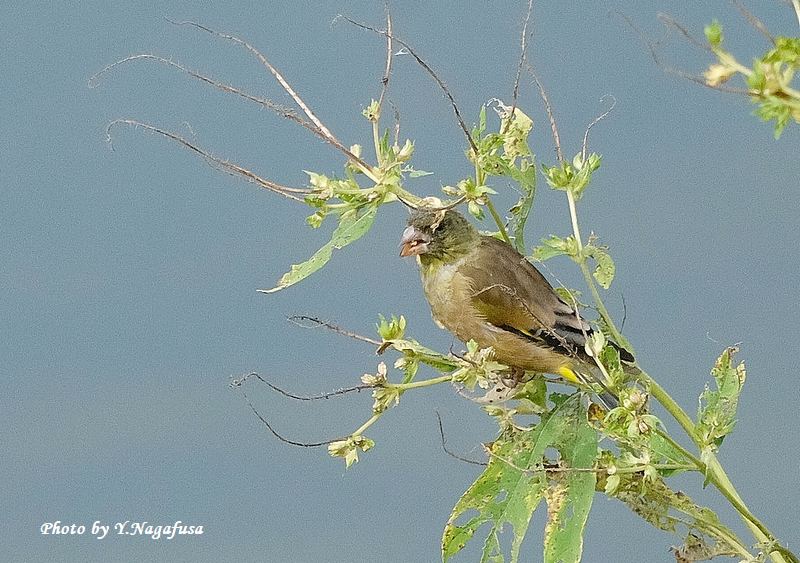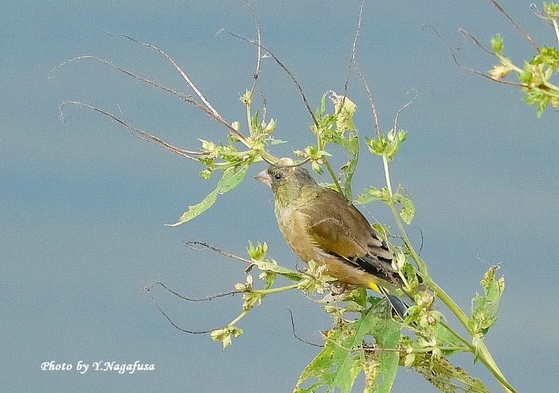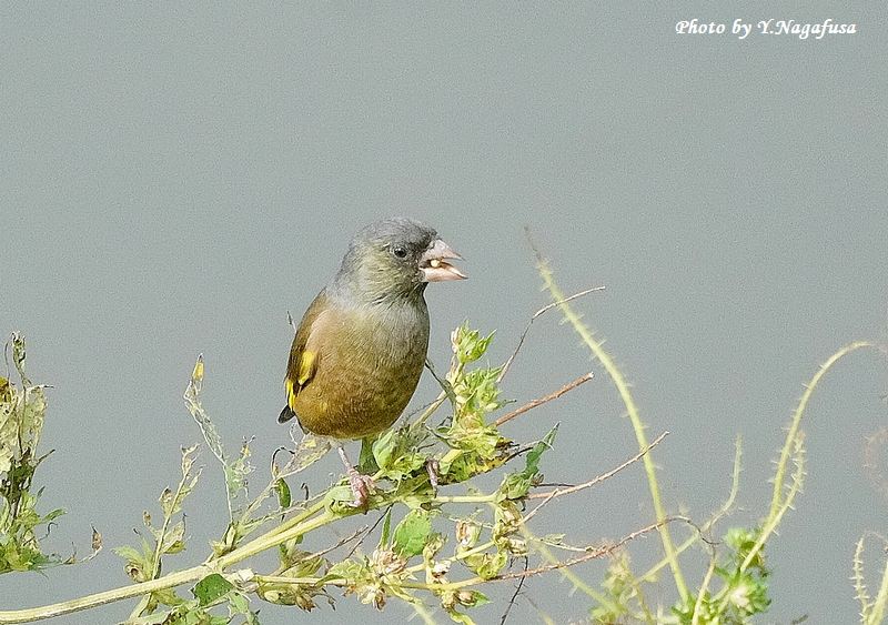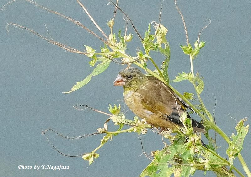この日は、カワラヒワの群れはしばらく採餌していました。