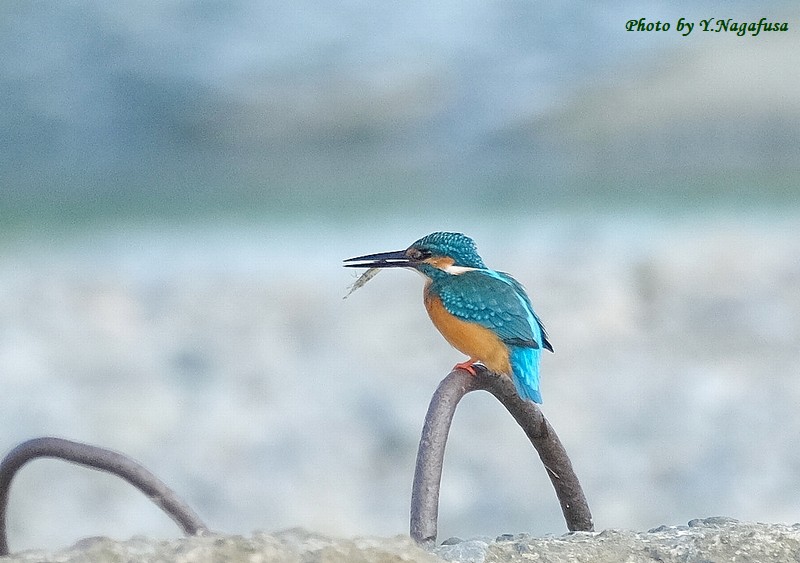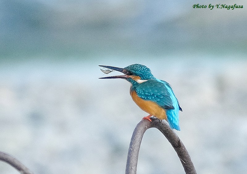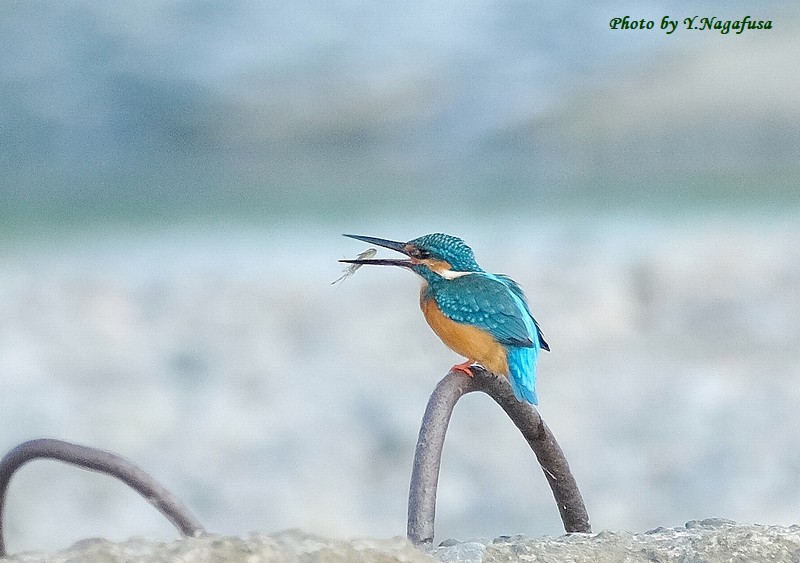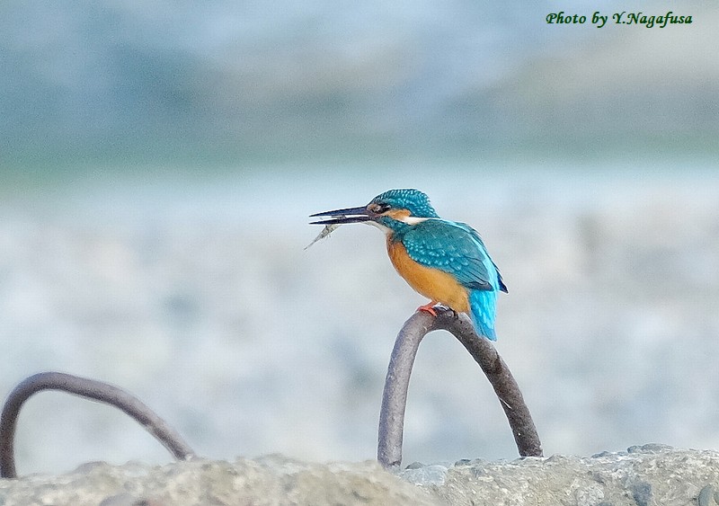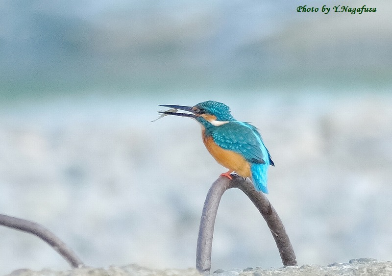 この日は、カワセミが小さなエビを捕りました。