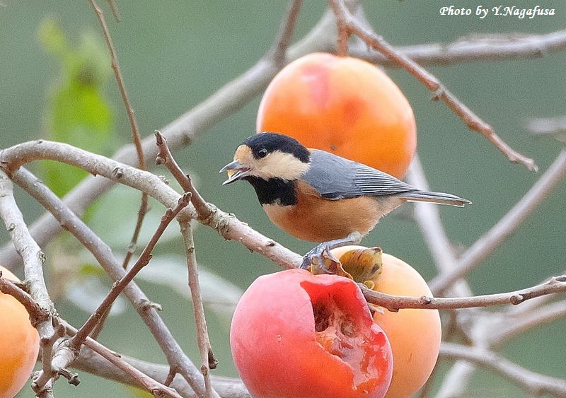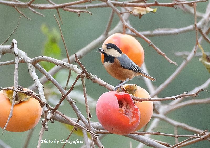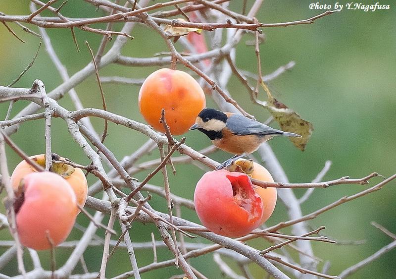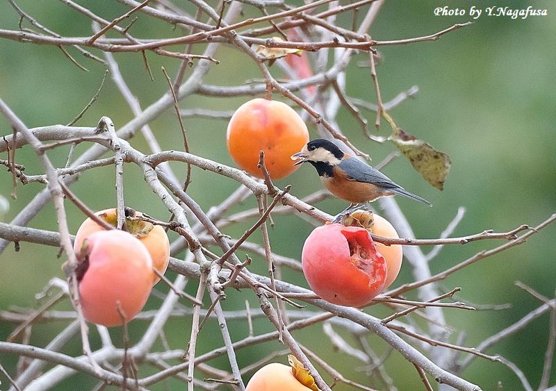 この日、柿の木でヤマガラが数羽採餌していました。