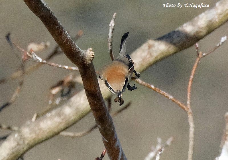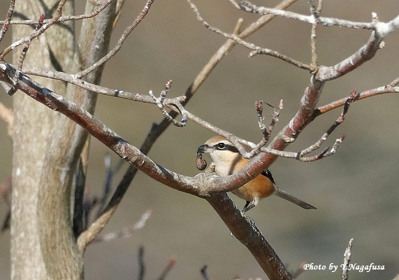 この日、モズが獲物を咥えたところを見つけました。