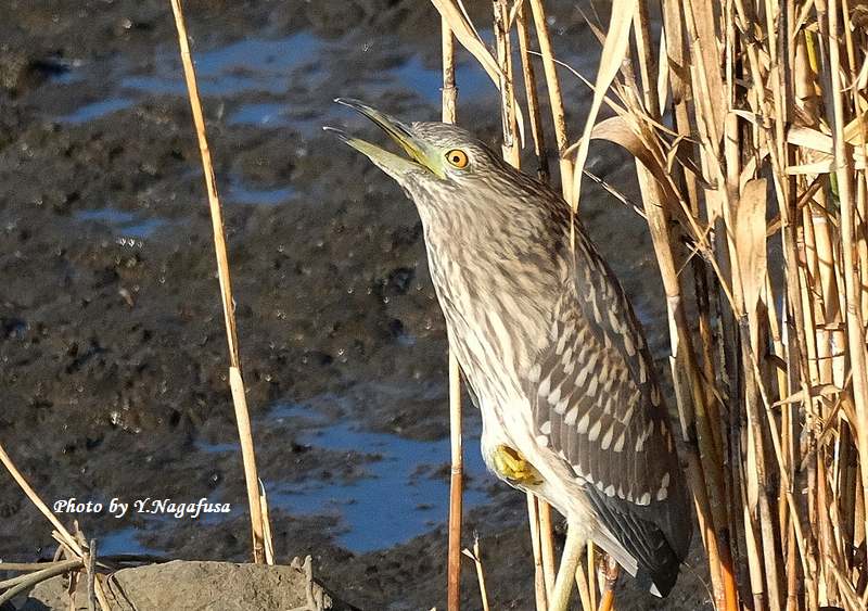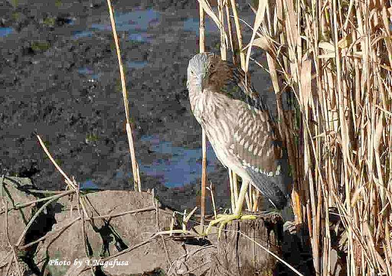 2025年1月11日 ゴイサギ若鳥 留まり物 本日は、ミコアイサ♀を見ました。♂は葦の中でお休みのようです。 1月5日撮影のゴイサギ若鳥です。 この日、ゴイサギを4個体見ました。 ゴイサギ若鳥です。