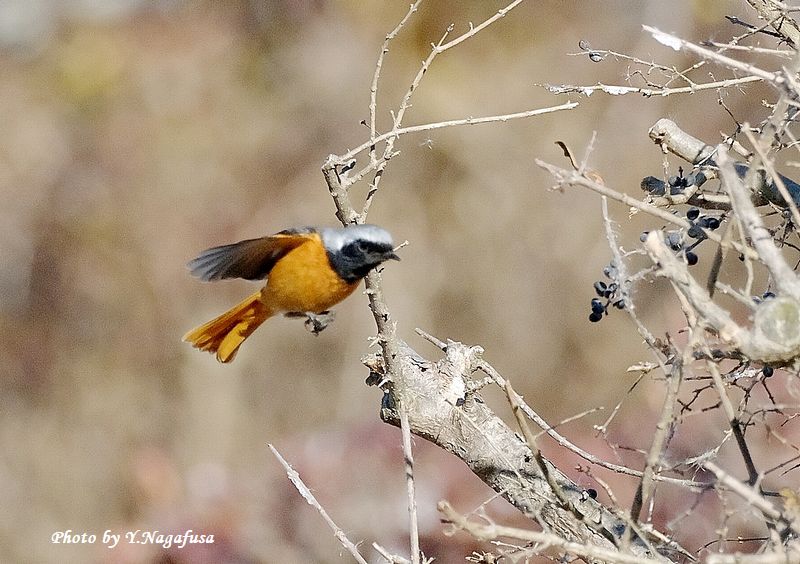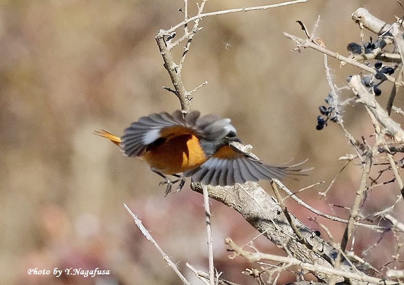 2025年2月2日 ジョウビタキ♂ 枝留まり、飛び出し