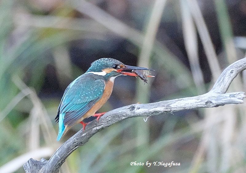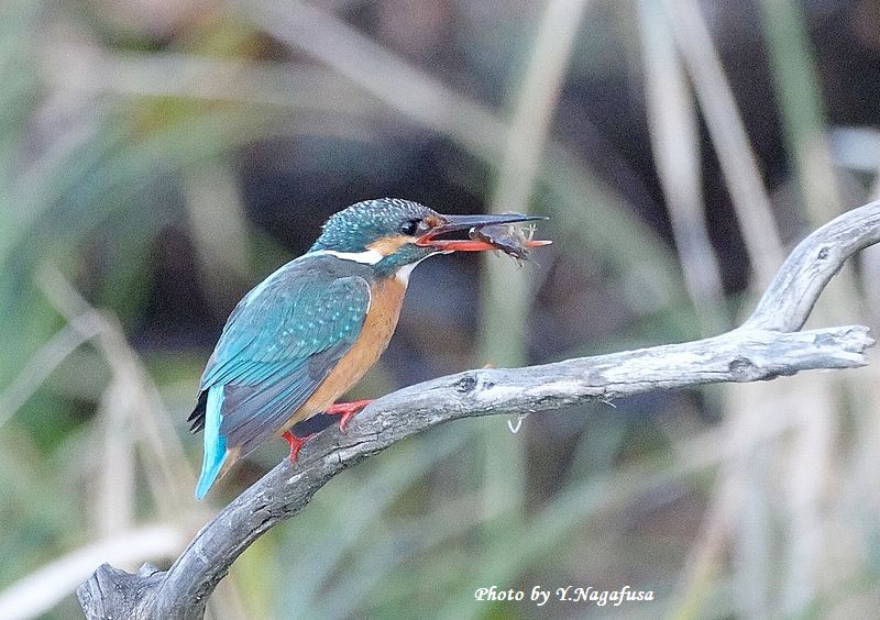 この日、カワセミがすぐザリガニを捕って来ました。