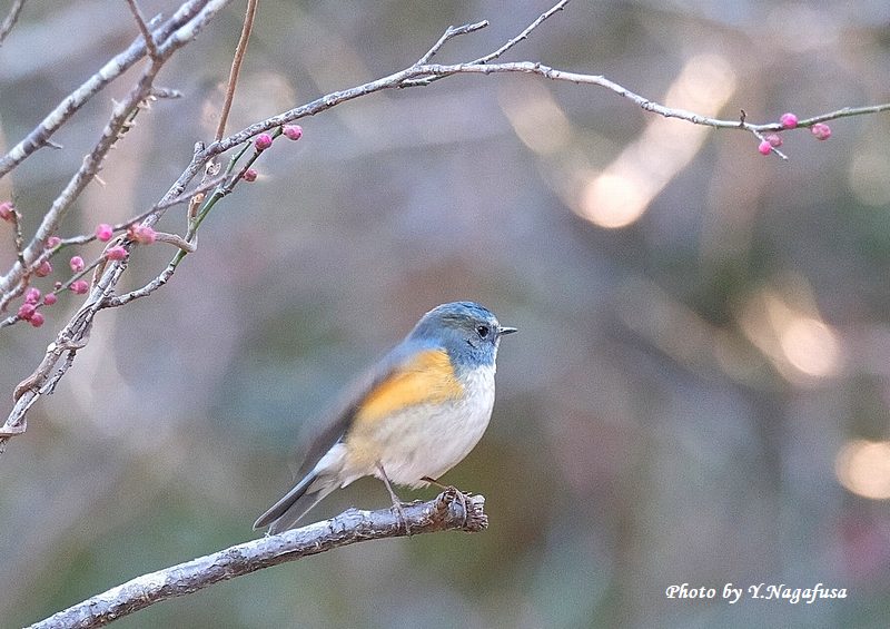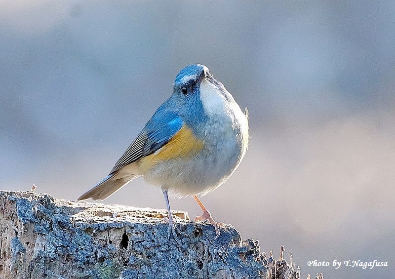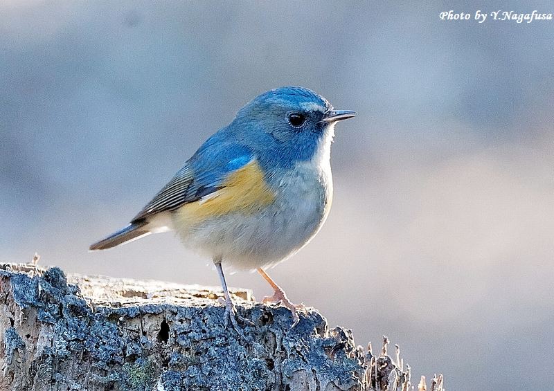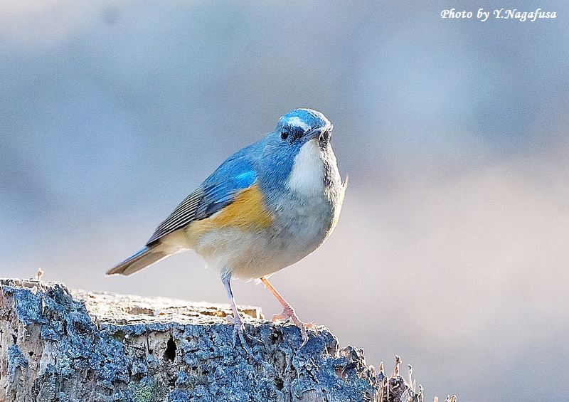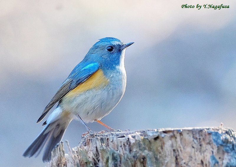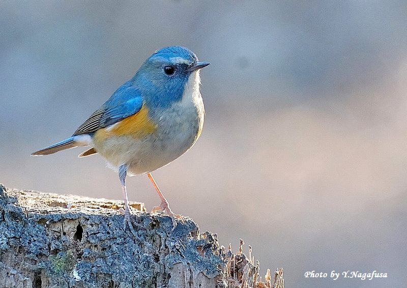 この日、ルリビタキ♂は近くの切株の上にしばらく居てくれました。