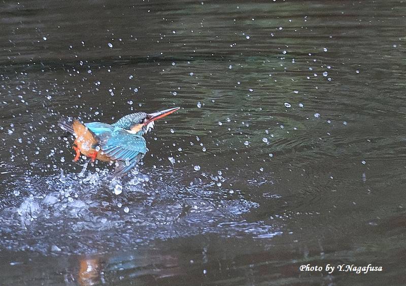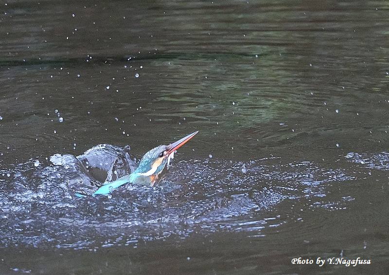 この日、カワセミが数回水浴びをしました。