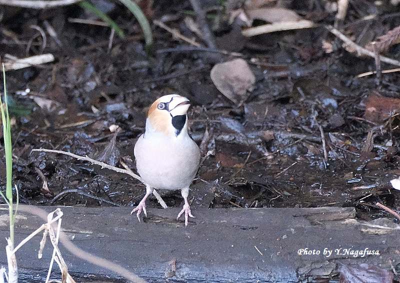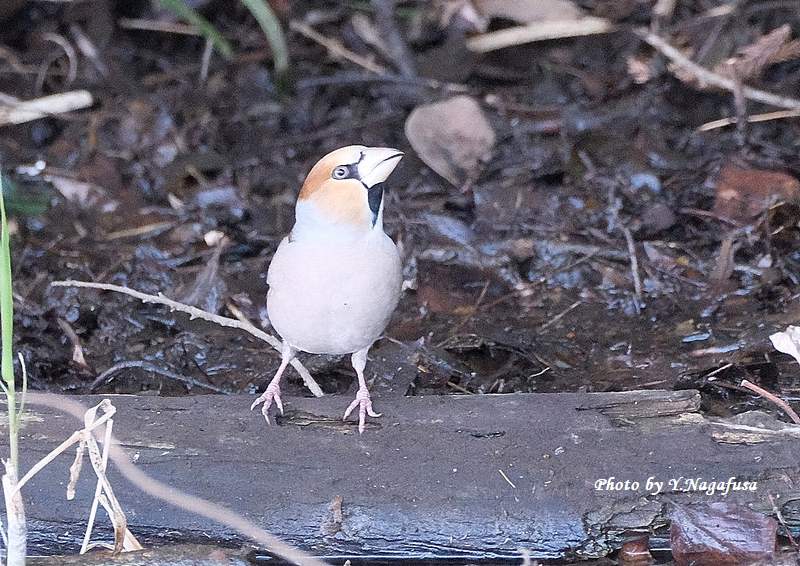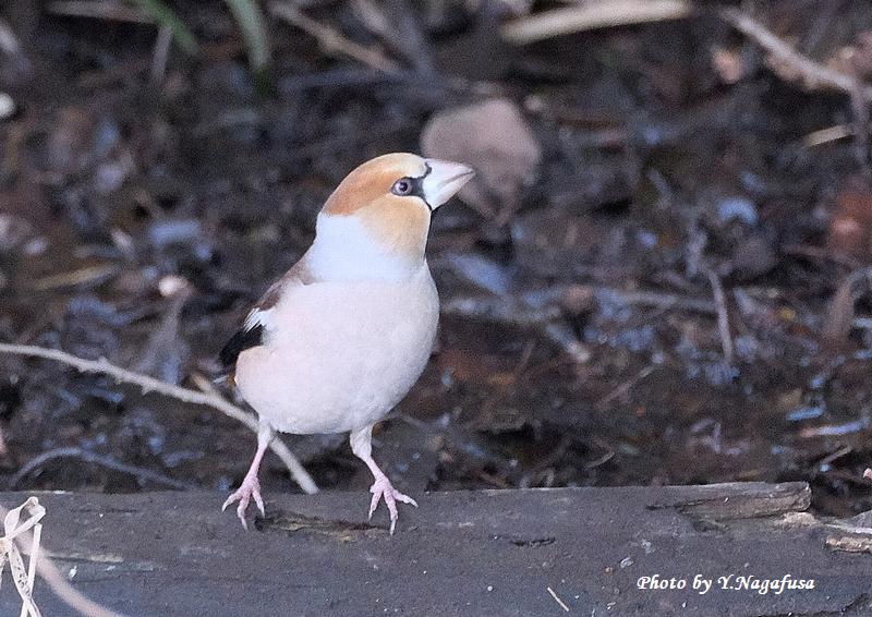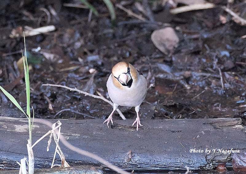 この日は、カワセミを撮っていたらシメが水飲みに来ました。