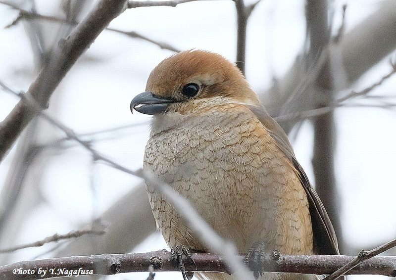この日、近くの枝にモズ幼鳥が来ました。
