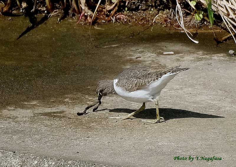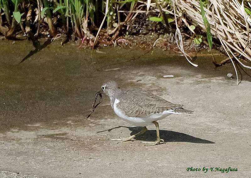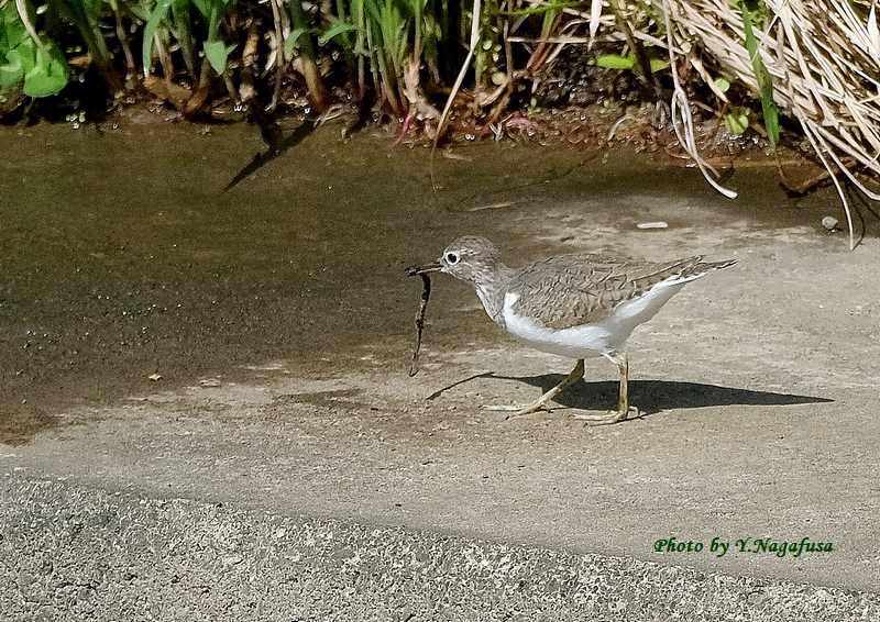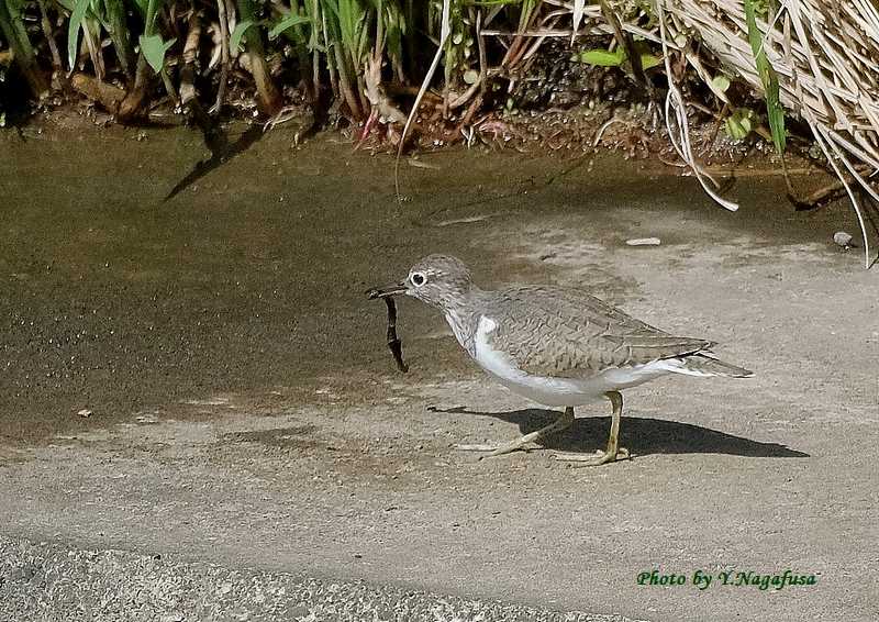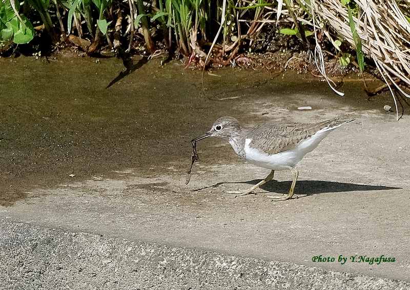 この日、イソシギがミミズを食べようとしていました。