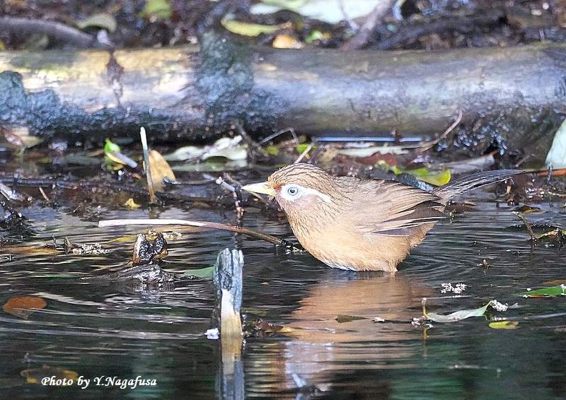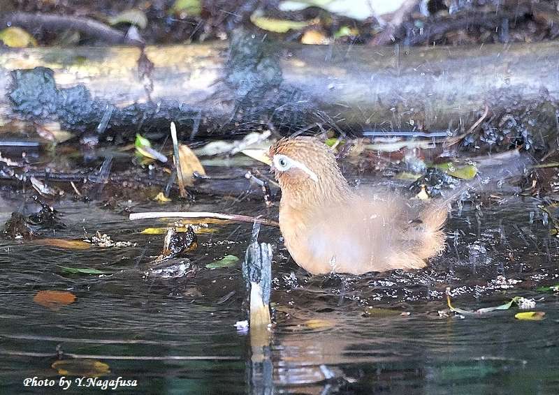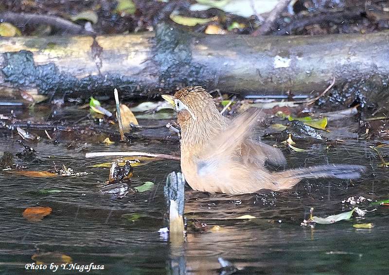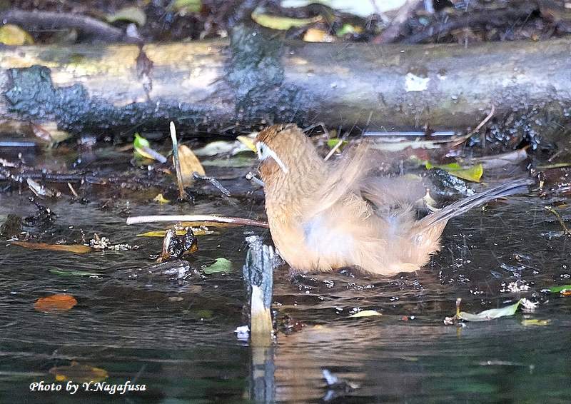 2025年5月10日 ガビチョウ・コサメビタキ 水浴び 本日は、雨のち曇り。 4月29日撮影のガビチョウとコサメビタキです。 この日、コサメビタキが一瞬来ました。 ガビチョウです。mono 物 コサメビタキが来ました